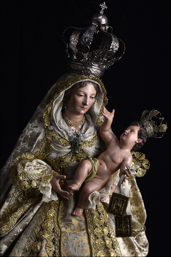 Vinculada al prolífico taller de Anton Maria Maragliano, la talla original presenta una extraordinaria similitud con los modelos femeninos ejemplificados en la obra del escultor genovés, algo que resulta especialmente evidente si se contempla el busto de la efigie, desprovisto de velo y manto; no menos evidente resulta el parentesco entre la movida talla del Niño Jesús y los modelos infantiles que se repiten en toda la producción del escultor. Es por ello que, pese a las distintas intervenciones que han sufrido la encarnadura y los cabellos de ambas imágenes, muy distantes de su aspecto prístino, y la adición en el siglo XIX de las características pestañas postizas que presentan en los párpados superiores, resulta incuestionable su filiación con la plástica maraglianesca.