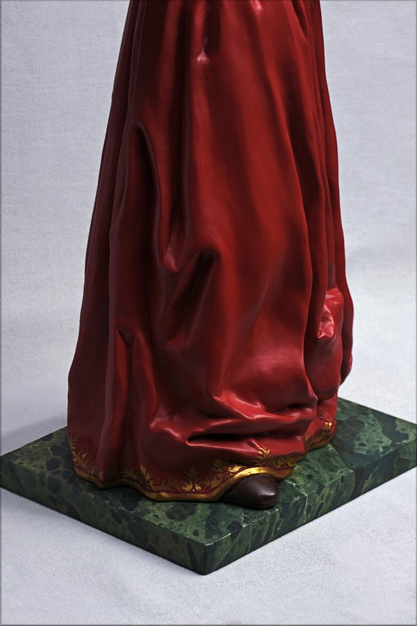 El trabajo más reciente del artista y restaurador murciano Santiago Rodríguez López es una réplica en miniatura de la venerada imagen de la Virgen del Carmen de Los Realejos (Tenerife), realizada para una colección particular de dicha localidad. La pieza, modelada en barro, alcanza una altura total de 45 cm, presentando policromía al óleo de acabado pulimentado, en la que se han reproducido las tonalidades y textura de la imagen reproducida, aplicándose, una vez concluida la encarnadura, una sutil pátina y pestañas de pelo natural.