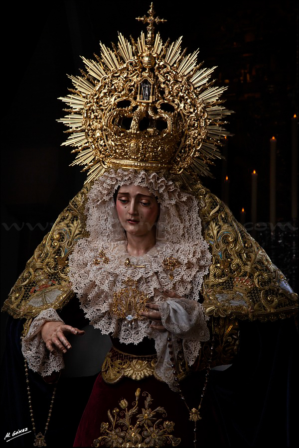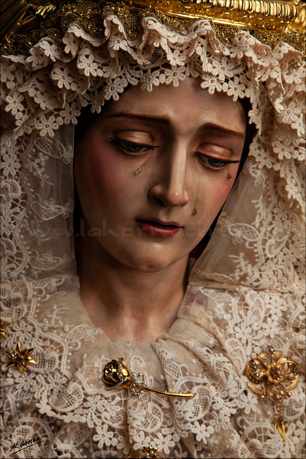 A raíz del estreno del techo de palio de la Virgen del Dulce Nombre (1984), obra de Manuel Solano diseñada por José Manuel Martínez Hurtado, el fotógrafo cordobés realizó un reportaje fotográfico de la dolorosa titular de la Hermandad de la Vera Cruz, que ahora ve la luz. Una de las instantáneas ha sido utilizada para el cartel que conmemora los 40 años de su ejecución por el polifacético artista sevillano Antonio Dubé de Luque, que talló una imagen de expresión transida por el dolor e idealizados rasgos tratados con suma delicadeza. El cartel se presenta hoy en el templo cordobés de San José, sede canónica de la Vera Cruz, a las 19:30 horas. |