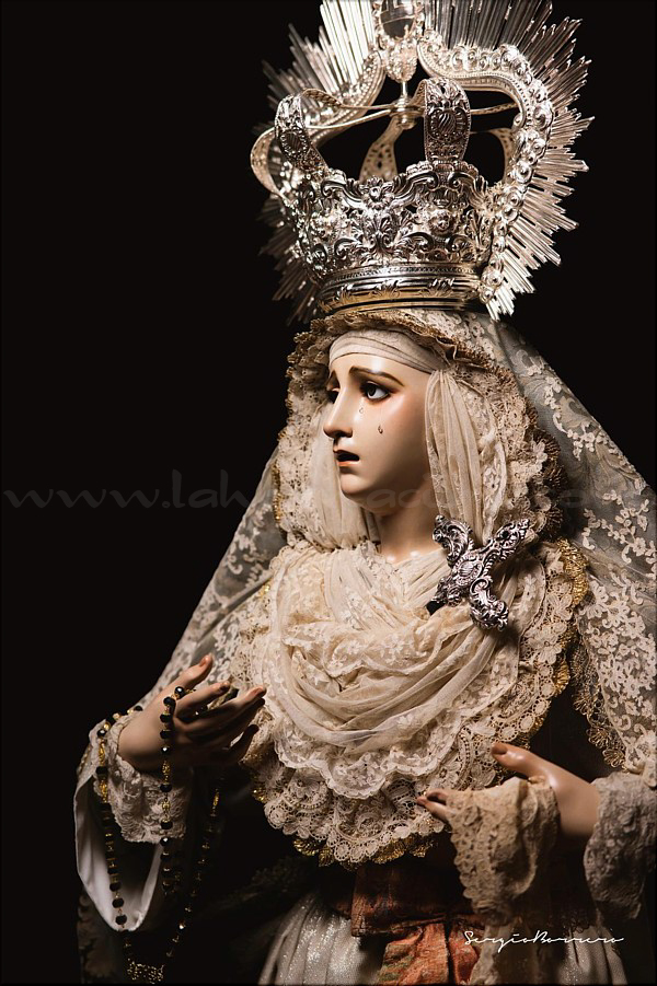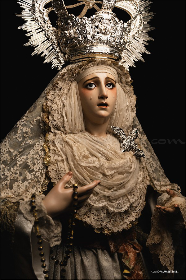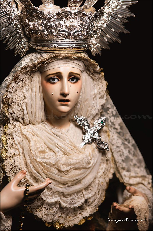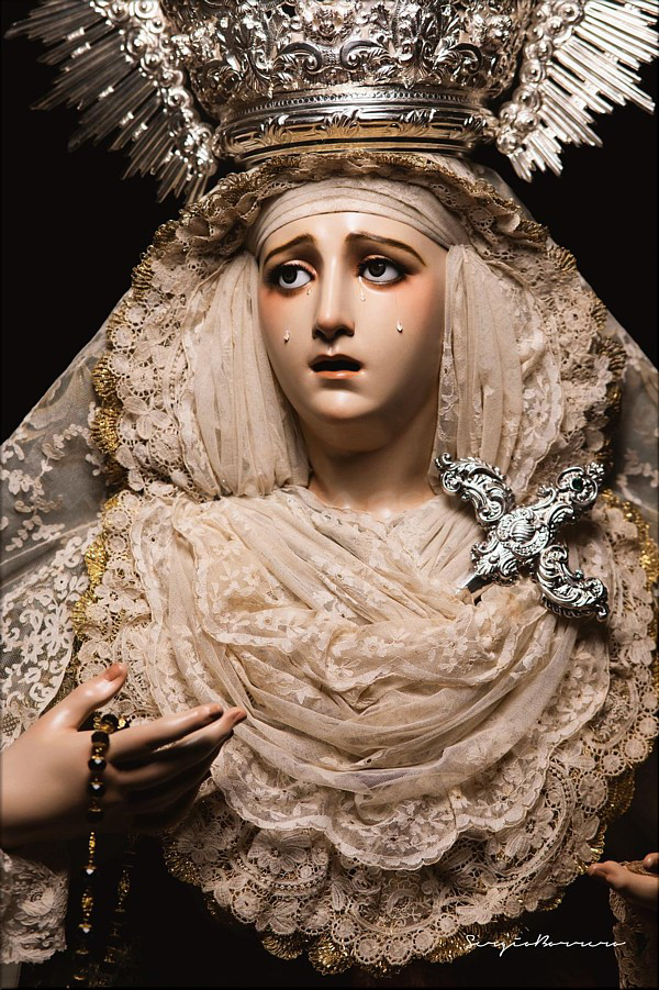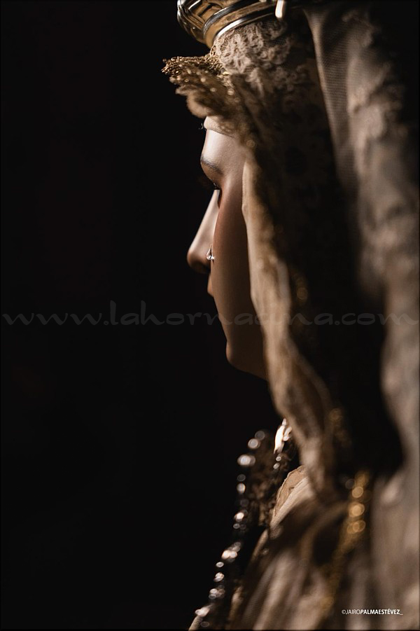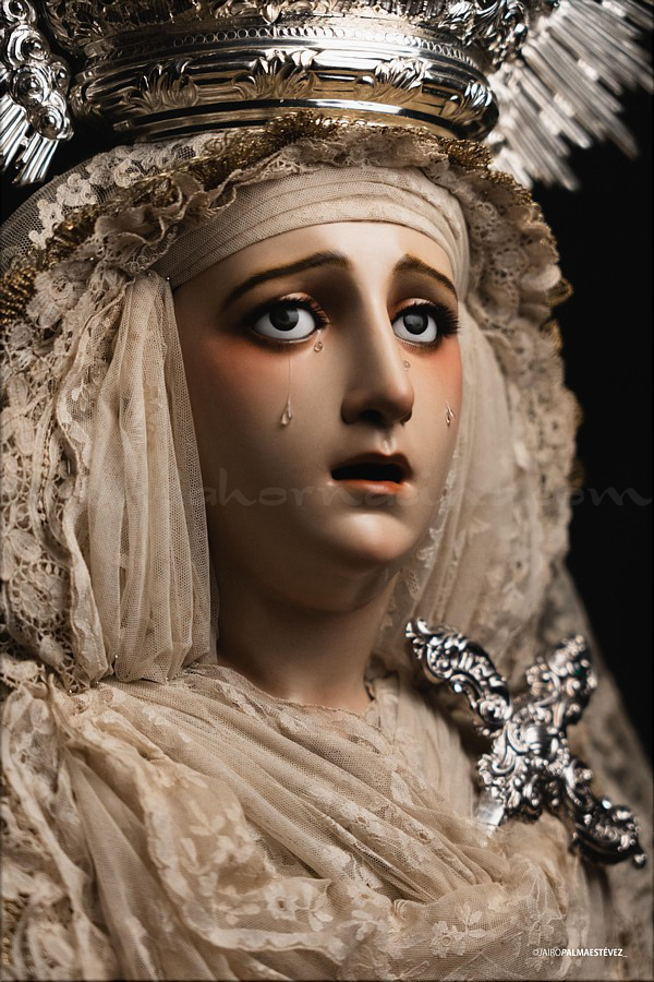 Dolorosa En las vísperas del final de la Cuaresma y a las puertas de la Semana Santa el escultor e imaginero onubense Abraham Ceada Santana presenta esta obra que, sin encargo previo, ha ido realizando a lo largo de cuatro años. Se trata de una imagen de la Virgen Dolorosa, de candelero para vestir con una altura de 160 cm, realizada en madera de cedro. Lleva ojos de cristal pintados al óleo y pestañas de pelo natural, así como brazos articulados. Para la policromía, aplicada al óleo, Ceada ha contado con la colaboración de Rocío Martínez Sánchez, realizando ambos conjuntamente la capa pictórica. La obra, cercana al estilo ecléctico sevillano del siglo XIX, se encuentra disponible para su adquisición. Las personas o entidades interesadas pueden ponerse en contacto con el artista para conocer detalles de la misma. |