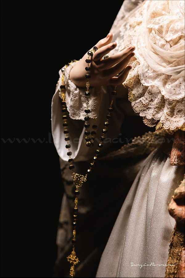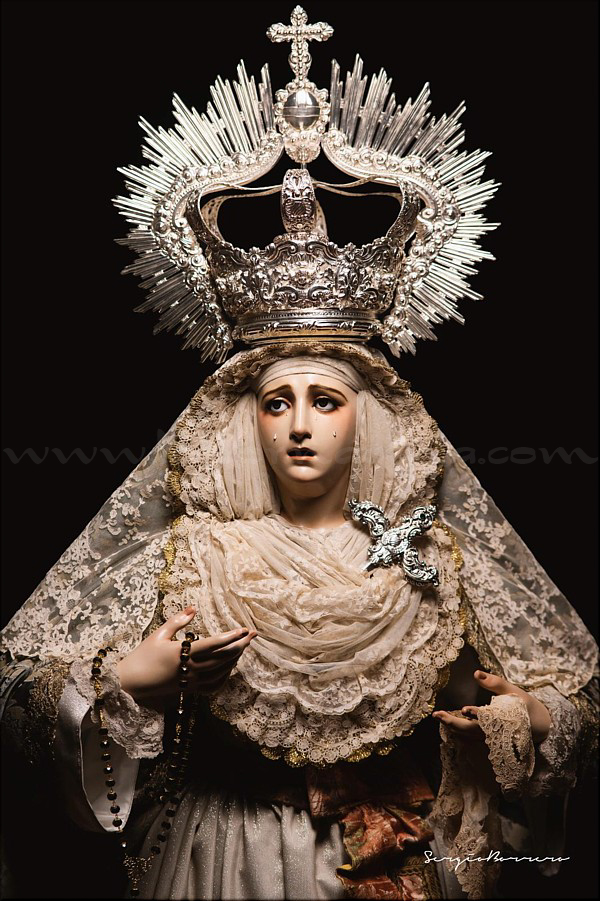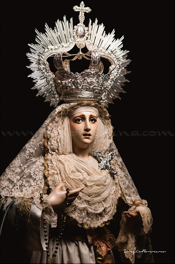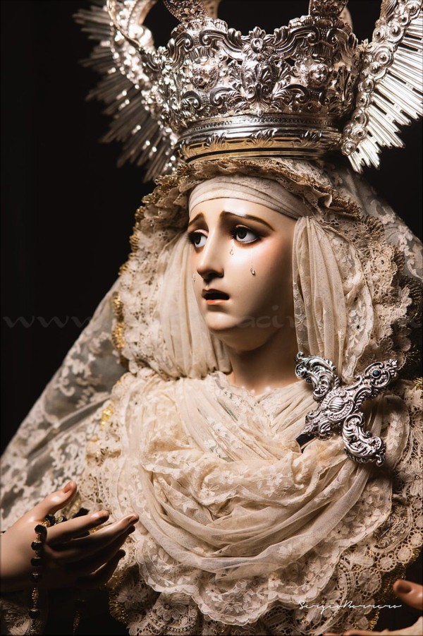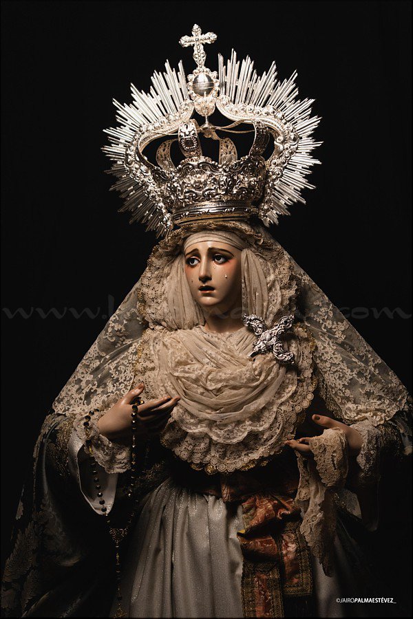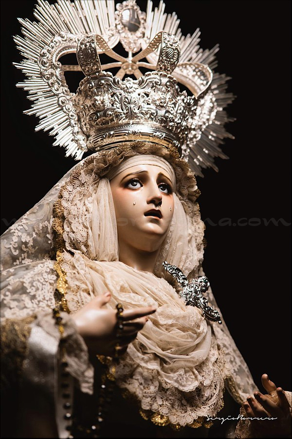 Dolorosa En las vísperas del final de la Cuaresma y a las puertas de la Semana Santa el escultor e imaginero onubense Abraham Ceada Santana presenta esta obra que, sin encargo previo, ha ido realizando a lo largo de cuatro años. Se trata de una imagen de la Virgen Dolorosa, de candelero para vestir con una altura de 160 cm, realizada en madera de cedro. Lleva ojos de cristal pintados al óleo y pestañas de pelo natural, así como brazos articulados. Para la policromía, aplicada al óleo, Ceada ha contado con la colaboración de Rocío Martínez Sánchez, realizando ambos conjuntamente la capa pictórica. La obra, cercana al estilo ecléctico sevillano del siglo XIX, se encuentra disponible para su adquisición. Las personas o entidades interesadas pueden ponerse en contacto con el artista para conocer detalles de la misma. |