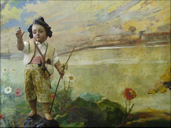 Evolución histórico-artística (II) Entrada la década de 1880 se estrena un nuevo paso, que ya aparece fotografiado en 1885. Este paso tenía una configuración similar al anterior aunque estaba realizado en metal repujado y plateado. Es el que más tiempo ha utilizado la Divina Pastora, pues con algunas reformas se mantuvo hasta el estreno de la actual canastilla en 1978. Todavía se conserva aquella canastilla de plata, de corte rectangular, formada por dos grandes cenefas que recorren de forma horizontal cada cara, interrumpiéndose en el centro para alojar los emblemas del cayado y el sombrero y el anagrama de María en cada uno de sus lados. Cuenta con un fondo plano con las típicas marcas de escama a cincel de época rocalla, que junto con la plástica de grandes volúmenes y hojarasca naturalista, evocan la estética del rococó francés, recuperada para la moda en la Francia de Napoleón III. A pesar de ser sustituida en los 70, se sigue utilizando en los cultos con usos diferentes al procesional. Llevaba grandes candelabros en sus esquinas que podían girarse al llegar a los tramos más estrechos del recorrido. La profusión de guardabrisas corría a lo largo del perímetro del canasto, y dos candelabros de menor tamaño (tipo "mecheros"), situados en la peña, daban luz a la Virgen, como era costumbre en muchos pasos de Glorias de Sevilla. La iluminación se convirtió en una "obsesión" entre fines del XIX y comienzos del XX, incorporándose en el año 1919 la luz eléctrica como "artículo de lujo", un avance que permitía mejorar la visión de la Virgen y que ésta no sufriera el daño del humo de la cera. La luz eléctrica es otro de los elementos que otorgan gran personalidad al paso de la Pastora. Desconocemos el autor de este segundo paso, pero podemos atribuirlo con bastante fundamento al taller de Isaura, cuya obra más conocida es el palio de plata de la Virgen de la Esperanza Macarena, realizado en 1875, vendido en 1918 a la hermandad sevillana de los Gitanos y posteriormente a la Virgen del Mayor Dolor de Aracena (Huelva), que lo conserva. Muchas semejanzas guardan algunos elementos de este palio con el paso cantillanero, especialmente las grandes hojas de acantos de los candelabros de guardabrisas y los tallos de bronce macizo. Estas hojas las conserva todavía la Divina Pastora en el Sol utilizado en los cultos de mayo. Estos candelabros tan característicos bien pudieran recuperarse devolviéndole todas sus piezas originales. La fábrica de bronces y metal blanco de Isaura fue fundada en 1760 por su abuelo Raimundo y continuada por su padre. La empresa recibió numerosas medallas en varias exposiciones, entre ellas las celebradas en París, Londres, Viena, Filadelfia y Boston. Isaura nació en 1824 y estudió desde los 10 a los 20 años en la Junta de Comercio de la Casa Lonja, donde recibió clases de dibujo, modelado y grabado. Seguidamente viajó a Francia, Bélgica, Alemania, Austria e Inglaterra para estudiar los adelantos introducidos en cada país en el trabajo de los metales, con objeto de implantarlos en su fábrica cuando regresó a ella en 1842. En aquel momento, se produjo el descubrimiento en Francia de los procedimientos galvánicos para platear y dorar inventados por Ruolz, introduciendo Isaura tan notable descubrimiento en su factoría, en la que llegó a existir una máquina de vapor de 60 caballos que impulsaba las máquinas utilizadas en la elaboración de los productos artísticos. Durante la primera mitad del XX vemos este paso adaptándose a los gustos de la época en cuanto al exorno: con flores contrahechas, cambios en la disposición de las ovejas en la peña, etcétera. En los inicios del siglo sufre la primera gran remodelación, ya que pasa de tener cuatro a ocho maniguetas. La canastilla de plata se ubica sobre estos elementos, pues anteriormente se utilizó simulando unos respiraderos. Consta que a mitad de la década de 1940 fue plateado de nuevo. En 1957 llega la gran reforma del paso al adaptarlo para ser llevado por costaleros. Se construyeron unas parihuelas a las que se adaptó la canastilla mientras que los primeros años se utilizaron unos respiraderos cedidos por la hermandad de la Divina Pastora de Triana. En las cuatro esquinas, se situaron cuatro jarras de plata. En esta época las flores contrahechas dan paso a las naturales: nardos, claveles, gladiolos… Aquellas flores elaboradas artesanalmente se realizaban de forma similar al árbol; manos pastoreñas daban forma al carismático rosal o al tradicional almendro que siempre acompañaron a la Divina Pastora cantillanera, frente al resto de Pastoras que habitualmente han utilizado un granado o álamo plateado, como la del convento franciscano de San Antonio de Sevilla. Es inevitable aquí la referencia a Pastora Solís, que durante buena parte del siglo pasado se encargó de ellos. Sus descendientes siguen manufacturando en la actualidad estos árboles que suponen otro de los elementos distintivos de la Divina Pastora y de su paso. |