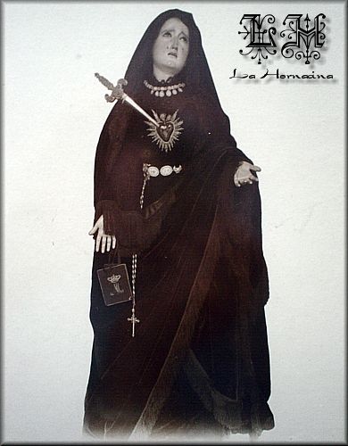 En la instantánea, la Virgen aparece con algunas joyas. Según cuentan en la Venerable Orden Tercera, las joyas que aparecen en el cíngulo de la Señora no se usan desde que se tomó la misma.