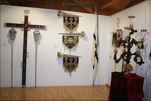 LA ORACIÓN DEL HUERTO Los fundadores eligieron como motivo pasional la Oración de Jesús en el Huerto de los Olivos. En este apartado se exponen parte del paso de Cristo tallado por José Martínez en 1970, el apostolado que acompaña al Cristo desde la pasada Semana Santa de 2015, las insignias como la Cruz de guía, el Senatus o la bandera cruzada y otros elementos del ajuar del Señor como sus ropajes, túnicas y mantolín, potencias, cáliz, etcétera. Un conjunto de fotografías recuerda los cultos que se celebran cada Cuaresma y la evolución del paso procesional. En esta sección se incluye el ajuar litúrgico de la Hermandad con una rica colección de cáliz, copones, palia y otras piezas, la mayor parte de ellas realizadas en el siglo XIX. |