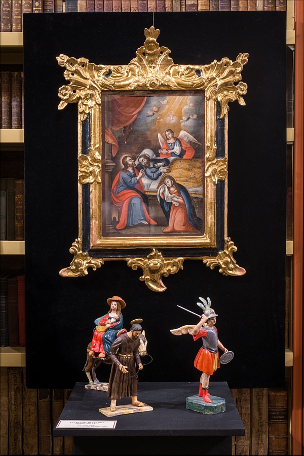 Nueva Iconografía El Carmelo impondrá una iconografía nueva, un San José joven, caminante, que lleva de la mano al Niño Jesús. Las obras de Juan Martínez Montañés o de su discípulo Juan de Mesa y Velasco para la Orden así lo evidencian, así como la de Giraldo de Merlo en Ávila. En la exposición Iosephina: 150 Aniversario de San José como Patrón de la Iglesia. El Carmelo de Santa Teresa y San José pueden verse hermosos testimonios, unas 30 obras, algunas de ellas vinculadas a reconocidos artistas como dos grandes maestros del barroco sevillano: Francisco de Ocampo, cuya imagen presentamos restaurada por Carles Salafranca, o Pedro Roldán. Junto a ellas destacamos otros ejemplos del círculo de Alonso Cano, la escuela roldanesca o la escuela antequerana, catalogados entre los siglos XVII y XVIII. Igualmente destaca la presencia de numerosas terracotas con todas las escenas del Santo: Pidiendo Posada, Los Espositos, Nacimientos, el Sueño de San José o la Huida a Egipto. Entre los ejemplos de obras pictóricas destacamos las obras de la escuela de Bartolomé Esteban Murillo, Manuel Cabral Bejarano o curiosos ejemplos como el "Tránsito de San José". También encontramos algunas obras contemporáneas debidas a los escultores e imagineros Lourdes Hernández Peña o Juan Alberto Pérez Rojas, ambos con taller en Sevilla. En la muestra se puede ver incluso algún ejemplo de orfebrería, como un magnífico ostensorio del siglo XVIII, o las ediciones de "Iosephina" del padre Gracián (1616) y otra selección de escritos, estampas y medallas. |