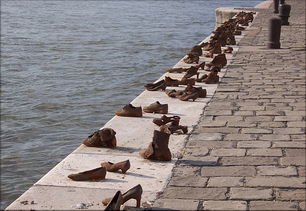 Este proyecto pretende recordar a los miles de judíos asesinados por los fascistas de Arrow Cross al borde del popular y no siempre tan poético río, donde eran atados en parejas y, tras ser abatidos a tiros, arrojados al agua. Fue inaugurado en el año 2005 según una idea del cineasta Can Togay, llevada a la escultura por Gyula Pauer.