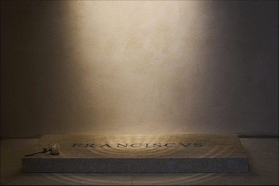 Tumba del papa Francisco (Bernat Armangue/Associated Press) Esta foto tomada en abril de la tumba del papa Francisco en Roma -el primer entierro de un pontífice fuera del Vaticano en más de un siglo-, sobre la que se depositó una solitaria rosa blanca, fue exquisitamente evocadora. La austera losa de piedra parece estremecerse bajo la luz mohosa de la cripta. |