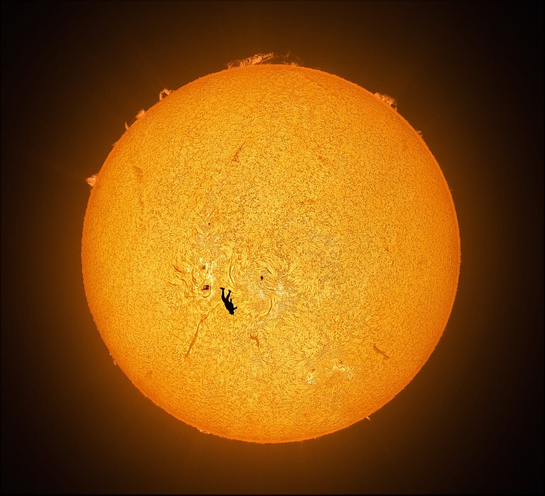 La caída de Ícaro (Andrew McCarthy) Una imagen extraordinaria, captada por el astrofotógrafo Andrew McCarthy, de su amigo haciendo paracaidismo, recortada contra una instantánea de intensa textura del sol matutino en Arizona el 8 de noviembre, cautivó la imaginación mundial. No había margen de error, ya que cada aspecto de la proeza, cuidadosamente calibrada, debía salir exactamente como se había planeado: una sincronía de elevación solar, tiempo y acrobacias en picado. Bautizada rápidamente como La caída de Ícaro, en honor a la historia mitológica griega del niño cuyas alas se derritieron al volar demasiado cerca del Sol. |