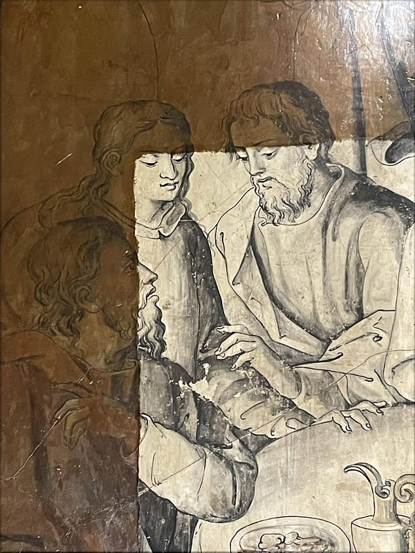 Antes y después de la limpieza. Detalles de María Magdalena ungiendo los pies a Cristo |