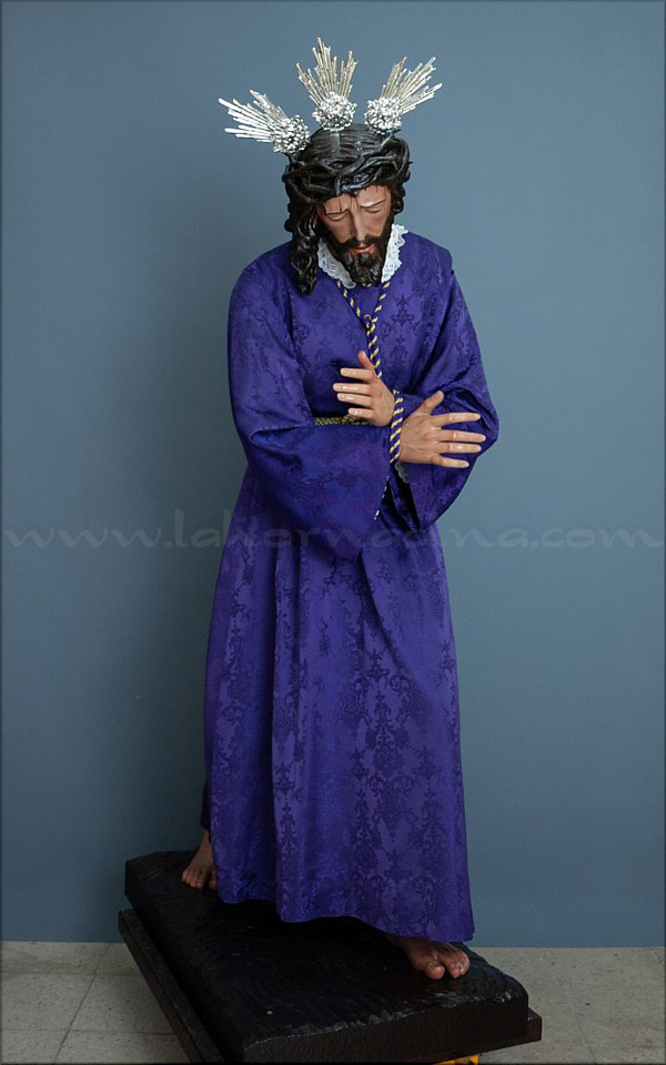 La imagen de Jesús Nazareno fue realizada por el escultor e imaginero sevillano Antonio Castillo Lastrucci en 1938. Es una imagen de vestir con una clara influencia en la composición de Nuestro Padre Jesús del Gran Poder de Sevilla, con una potente zancada y una configuración de la cabeza que recuerda positivamente a la imagen tallada por Juan de Mesa en 1620. Los trabajos realizados por la restauradora sevillana Carmen Bahíma sobre esta imagen han devuelto al nazareno malagueño todo el esplendor perdido tras unas intervenciones pasadas que se habían alterado de manera considerable. Se realizó un TAC para conocer el estado de conservación interno de la figura, especialmente en los ensambles de las distintas piezas que componen el cuerpo. Se ha llevado a cabo una limpieza química y mecánica de la policromía, eliminando los repintes aplicados con muy mala factura, especialmente en las piernas y las manos. |