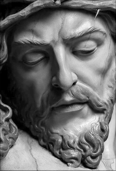 La advocación del Cristo de las Ánimas hace referencia a la escultura de Nuestro Padre Jesús de la Buena Muerte y Ánimas, crucificado titular de una hermandad de penitencia, fusionada en 1884 con la de Nuestra Señora de los Dolores, que fue destruido en los disturbios civiles de 1931. Diez años antes, la Hermandad de la Buena Muerte y Dolores se fusionó con la Hermandad de la Misericordia, dando lugar a la actual corporación de Semana Santa: Real, Ilustre y Venerable Cofradía de Nuestro Padre Jesús de la Misericordia, Santísimo Cristo de Animas y Nuestra Señora del Gran Poder y San Juan de Dios, con sede en la iglesia malagueña del Carmen (Barrio del Perchel). Esta majestuosa representación de Cristo muerto en la cruz, sujeto a un madero cilíndrico y arbóreo por tres clavos, es una interesante creación del escultor e imaginero sevillano. Con ella, la Hermandad de la Misericordia recupera un titular perdido que nunca fue repuesto al culto hasta la fecha. Imagen procesional de bulto redondo que mide 187 cm de altura, tallada en madera de cedro real y policromada al óleo mediante veladuras, con estofados del pintor Manuel Peña Suárez en el paño de pureza -en un guiño al estofado que lleva la talla de Nuestro Padre Jesús de la Misericordia en su perizoma-, y atributos de orfebrería cincelados por Joaquín Ossorio: nimbo y titulus crucis escrito en tres idiomas. |