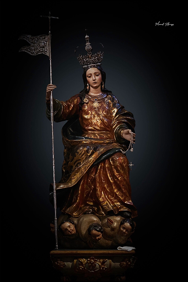 La imagen de María Santísima de la Aurora responde al modelo propio de esta iconografía, que se generaliza en una talla mariana de bulto redondo, en madera estofada y policromada, de tamaño algo menor que el natural y gran perfección formal, en actitud sedente sobre peana de nubes sostenida por ángeles, manto y túnica dorados con el forro verde, portando corona plateada, en su mano derecha un lábaro o banderola de plata con un sol, cetro en la mano izquierda y media luna en creciente plateada sus pies. La presencia del lábaro pudiera explicarse por nacer esta advocación de la práctica rosariana, ligada a la orden dominica, cuyo fundador Santo Domingo de Guzmán figura con este atributo. La obra se atribuye con fundamento al escultor e imaginero José de Medina por detalles como la composición de los paños, la riqueza de la policromía y los estofados, y los serenos rasgos faciales, de limpio acabado. Su fecha de ejecución puede situarse entre los años 1756 y 1759, según la documentación que consta del encargo efectuado por la Cofradía a instancias de José de Arjona Hurtado. La restauración, presentada ayer en la ermita lucentina de la que es titular, ha sido realizada por Miguel Ángel Sánchez Jiménez y Manuel Espejo Mármol. Tras una serie de estudios previos a la talla mediante técnicas como la radiografía o la fotografía ultravioleta, los trabajos se han centrado principalmente en la limpieza de suciedad superficial, restañado de grietas, resanado de ensambles, reintegraciones puntuales en volúmenes, policromía y dorado, y eliminación de repintes, capas de barnices oxidados y elementos metálicos. José de Medina (Alhaurín el Grande, Málaga, 1709 - Jaén, 1783) se estableció muy joven en Jaén, donde vivió hasta su muerte, con salidas para realizar obras en otros lugares de Andalucía, sobre todo Antequera, Lucena y Estepa, donde dejó la otra gran parte de su magnífica producción. En Jaén llevó a cabo obras tan significativas como el Cristo de la Expiración y la Virgen de los Dolores de la Cofradía de Jesús Nazareno. Para Lucena realizó obras tan significativas como los ángeles y evangelistas de la capilla del Sagrario de la Parroquia de San Mateo o la decoración escultórica del retablo mayor del Convento de San José y Santa Teresa (Carmelitas Descalzas), salvo el San José con el Niño que constituye su eje, relacionado con el granadino José de Risueño. El retablo, de líneas parecidas al colosal del Carmen de Antequera, aunque mucho más sobrio, supone otra colaboración entre el entallador Antonio Primo y José de Medina, anterior en el tiempo (1738-1739) a la fábrica antequerana. |