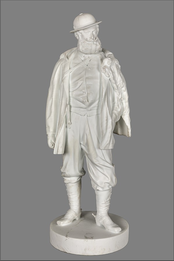 La fotoescultura fue una técnica concebida para representar tridimensionalmente a una persona con absoluta fidelidad, en diferentes formatos y materiales y de forma muy rápida. Fue inventada por el escultor y fotógrafo François Willème (Sedan, 1830 - Roubaix, 1905), patentada en París en 1860 y desarrollada entre 1860 y 1868, utilizando la fotografía y la escultura, lo que convierte a la fotoescultura en un antecedente del 3D. La reducción drástica en el tiempo de posado -10 segundos- fue clave. En una sola sesión, el escultor conseguía 24 placas fotográficas con 24 siluetas del retratado, y con ellas comenzaba el proceso de modelado. Se finalizaban mayoritariamente en biscuit -porcelana blanca sin esmaltar- y solían llevar incisas las palabras "Photosculpture de France". También se realizaron en otros materiales como terracota, escayola o bronce. Para componer la imagen tridimensional utilizaba una linterna mágica -aparato óptico precursor del cinematógrafo- con una fuente de luz interior y mediante un sistema de lentes y espejos proyectaba secuencialmente las siluetas ampliadas sobre una pantalla traslúcida. Al otro lado de la pantalla un operario perfilaba cada contorno con un pantógrafo -un dispositivo mecánico usado para copiar imágenes con un brazo articulado al que se acoplada una máquina de corte-. Frente al operario se colocaba un bloque cilíndrico de arcilla o madera sobre un soporte giratorio. El pantógrafo transfería y recortaba con el mismo movimiento, uno por uno, los contornos sobre el bloque dejando la arcilla desbastada según las veinticuatro siluetas, convirtiéndose en una tosca escultura. Esta era reelaborada alisando el bloque, suavizando los pequeños intervalos entre los contornos y las asperezas de los recortes. El retrato podía estar terminado entre dos y cuatro días; la contrapartida era su elevado coste: entre 270 y 500 francos, lo que finalmente lo hizo inviable. El 9 de abril de 1863 esta técnica se patentó en Madrid donde se transcribió su nombre como "Willeine". El fotógrafo de la reina Isabel II, Jean Laurent, trajo a Madrid al inventor de la fotoescultura, para realizar una serie de perfiles en diversos tamaños, bustos y figuras de cuerpo entero de diversos miembros de la familia real española. Para ello, se construyó en el Palacio Real un estudio fotográfico como el diseñado por Willème en París, aunque más pequeño. Los negativos obtenidos de estas tomas fotográficas se enviaban a Marnyhac en París, donde se llevaba a cabo la realización de las esculturas. Se conserva la toma de una de las fotos del rey consorte Francisco de Asís posando para su fotoescultura de cuerpo entero sobre una plataforma de madera, dividida radialmente con líneas que se correspondían con cada objetivo fotográfico. Por la realización de estos trabajos a Willème se le concedió la Orden de Carlos III. |