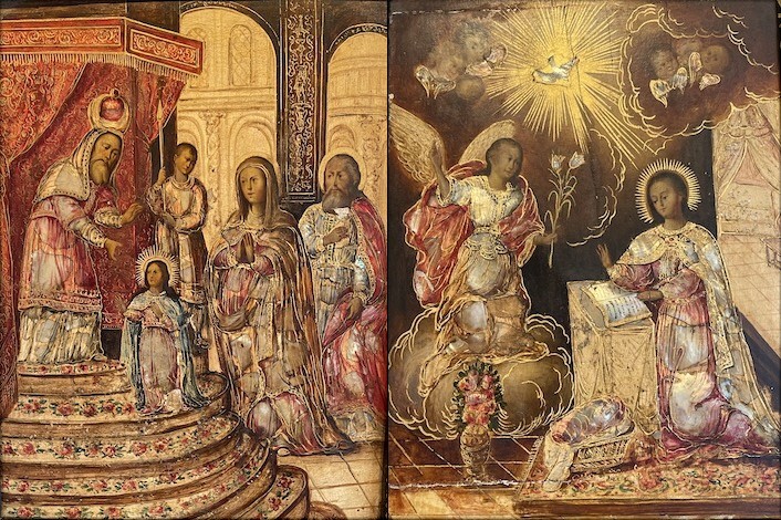El Ministerio de Cultura ha adquirido una serie de nueve enconchados, óleos sobre tabla con incrustaciones de nácar, por un valor de 2,2 millones de euros, la compra de mayor importe de un conjunto de bienes culturales de este año. Las pinturas, de finales del siglo XVII y producidas en el virreinato de Nueva España, serán adscritas al Museo de América, que posee la colección más importante de este género. De temática mariana, esta serie, que se ha conservado íntegra y en buenas condiciones, es un perfecto ejemplo de una de las manifestaciones más llamativas de este periodo, los enconchados, una técnica que solo se desarrolló durante un siglo y de la que solo se conocen alrededor de 300 muestras en el mundo. Por esto, además de por su extraordinario interés cultural, la serie adquirida destaca por su riqueza material, los detalles propios del gusto barroco novohispano y su preciosismo ornamental, que se vincula a la fascinación por el lujo asiático entre los siglos XVI y XVIII. La colección adquirida incluye, por un lado, ocho enconchados con escenas de la vida de la Virgen: "Natividad de la Virgen", "Presentación de la Virgen Niña en el Templo", "Educación de la Virgen", "Anunciación", "Visitación de la Virgen a Santa Isabel", "Bautismo de la Virgen y San José", "Dormición y Entierro de la Virgen" y "Asunción y Coronación de la Virgen", y por otro, una obra de factura similar: "Virgen de Guadalupe", que seguramente también formó parte del mismo conjunto. La temática de las tablas es única en su época, e incorpora escenas poco habituales como el "Bautismo de la Virgen y San José" oficiado por Jesucristo. También se incluyen detalles singulares, como la presencia frecuente del Espíritu Santo en forma de paloma -realizada con nácar- en varias escenas, y se recrean dos episodios en una misma pintura como ocurre en "Dormición y Entierro" y "Asunción y Coronación", que tampoco es muy habitual en este tipo de obras. En la iconografía destaca la riqueza decorativa del ajuar doméstico y ceremonial. También sobresalen las ropas de los personajes por su suntuosidad y el refinamiento de su ejecución. En las escenas exteriores de la vida de la Virgen se incluyen nubes con perfiles realizados en oro, reflejo de la influencia oriental de las obras. En el caso de la "Virgen de Guadalupe", destacan los claveles y rosas de Castilla que la rodean y evocan la tradición de las apariciones guadalupanas a Juan Diego en el Cerro del Tepeyac en 1531. Los marcos que acompañan las tablas están realizados en la misma técnica de enconchado, pintados imitando la laca negra y dorada de origen japonés ("urushi"), e incluyen rosetas y puntas de diamante. La producción de enconchados se concentra en el virreinato de la Nueva España, entre las décadas finales del siglo XVII y los primeros años del XVIII. Es una expresión artística muy breve, de la que, como hemos apuntado, se conservan en torno a 300 pinturas de este tipo, de las cuales casi 100 se custodian en el Museo de América. Esto la convierte en la colección más importante en su género del mundo. La colección del Museo de América se compone de ejemplares de extraordinaria calidad; algunas son pinturas individuales, en su inmensa mayoría de temática religiosa, mientras que otras se conciben como conjuntos, pudiendo citar las dos series de la "Conquista de México", una de las cuales es un depósito de larga duración del Museo del Prado, igual que los enconchados de la "Vida de la Virgen" procedentes de la Colección Real española; o bien la serie de la "Vida de Cristo", depositada por el Museo Nacional de Escultura. |
