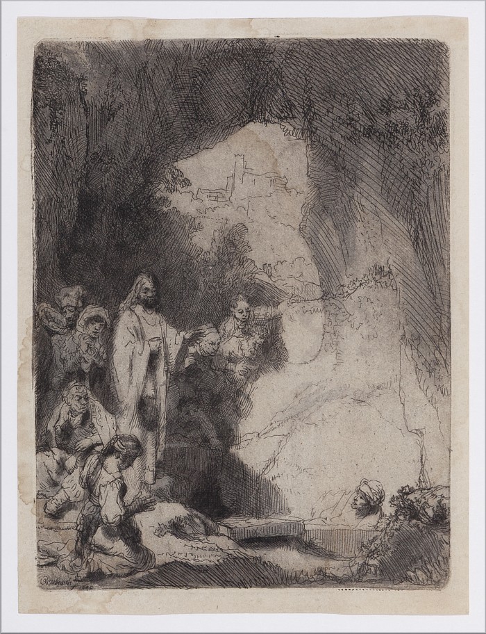 La muestra Rembrandt grabador es fruto de la colaboración entre el Museo Carmen Thyssen Málaga y el Museo Lázaro Galdiano de Madrid. Gracias a ello, el público puede admirar una selección de estampas de uno de los artistas más destacados del Barroco y el más importante de los Países Bajos, Rembrandt Harmenszoon van Rijn (Leiden, 1606 - Ámsterdam, 1669). El Museo Lázaro Galdiano conserva un conjunto de cincuenta estampas, reunidas por el coleccionista y bibliófilo navarro José Lázaro (Beire, 1862 - Madrid, 1947), del maestro holandés, uno de los mejores grabadores de la historia junto a Durero, Goya y Picasso. Las treinta y cinco obras expuestas en el Museo Carmen Thyssen Málaga permiten apreciar su evolución, desde sus primeros grabados, realizados de manera precisa, minuciosa y con la espontaneidad de un vigoroso dibujo, hasta sus interpretaciones más libres, cercanas a su pintura, dominadas por un magistral uso del aguafuerte combinado con el empleo del buril y la punta seca. El dominio del claroscuro en sus obras pictóricas se traslada a sus grabados, donde la luz emerge de la oscuridad con una intensidad dramática. Rembrandt fue un experimentador incansable; realizaba múltiples versiones de una misma lámina -denominadas "estados"-, añadiendo nuevas líneas y variando luces, sombras y detalles de la composición en busca de atmósferas cambiantes y diferentes lecturas y emociones en una misma escena. Entre 1620 y 1665 grabó alrededor de trescientas láminas, alcanzando una gran reputación en su época y llegando a ser más conocido y valorado por su obra gráfica que por sus pinturas o dibujos. En sus grabados abordó la misma variedad de asuntos que en su pintura; sin embargo, destacan especialmente los motivos bíblicos, tratados con gran espiritualidad, en los que deja traslucir su manera de entender e interpretar los textos bíblicos, en particular las historias de los patriarcas Abraham, Jacob y José, así como la vida y pasión de Cristo. Al mismo tiempo, grabó retratos de miembros de su familia y de la alta sociedad holandesa, mostrando una gran empatía y realismo psicológico; autorretratos en los que, además de documentar su envejecimiento físico, transmite su estado emocional; estudios de figuras, fundamentales en su proceso creativo, que le permitían explorar el movimiento, las proporciones, la anatomía y los volúmenes; paisajes, en los que experimentaba con la luz y la atmosfera; y las escenas de género, en las que narró de manera visual la vida cotidiana de Ámsterdam. |