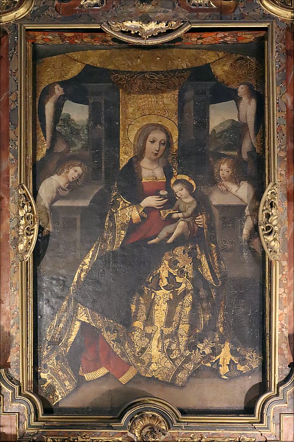 Firmada por el artista, la tabla renacentista de la Virgen de la Rosa, donada en el año 1757 a la iglesia trianera de Santa Ana (Sevilla), es una de las mejores obras de Alejo Fernández. La obra posee una serie de características que la hacen única en la producción del artista de origen alemán, no tanto por la temática como por la técnica utilizada y el acabado virtuoso de detalles que marcan la diferencia. Además, supone un referente dentro de la producción del pintor, que consigue crear todo un modelo, siendo una de sus mejores obras. La introducción de una composición original y personal consiguió convertir la pintura en un punto de influencia para las generaciones posteriores de artistas sevillanos, introduciendo una serie de elementos novedosos y vanguardistas que contribuirían a enriquecer la historia de la pintura sevillana. María, sedente y entronizada, ofrece una rosa, símbolo de su maternidad divina, al pequeño Jesús, que tiene un libro abierto entre sus manos. El expresivo semblante de la Señora manifiesta lo que los exégetas llaman la Melancolía de la Pasión. Su amplio ropaje describe un triángulo con base inferior. Los cuatro ángeles que secundan al grupo materno-filial equilibran la composición. En la zona superior, a ambos lados, se aprecia un dilatado paisaje de marcada lejanía. Aunque el concepto de la obra es flamenco, se advierten ecos botticellianos en la Madonna, del Pinturicchio en el Niño y bramantescas y venecianas en la arquitectura. Todo ello es buen ejemplo del singular eclecticismo que caracteriza la pintura sevillana del periodo. Hoy se ha procedido a retirar esta obra pictórica del templo para su restauración y conservación. Los trabajos serán realizados por la empresa Musae Restauración de Arte S.L. formada por Esther Soler y Ana Cordero, junto con el restaurador Darío Ojeda en su taller, y se contempla gracias al desarrollo del programa de subvenciones para la conservación de bienes muebles del patrimonio histórico de carácter religioso de la Consejería de Cultura y Patrimonio Histórico de la Junta de Andalucía. Dentro de la propuesta de intervención se realizarán estudios radiográficos, fotográficos, químicos e histórico-artísticos, estos últimos dirigidos por Ramsés Torres García, historiador del arte. La restauración será integral puesto que el estado de conservación de la obra es deficiente. |