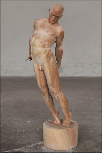 El polifacético escultor logroñés, afincado en Madrid, ha realizado para su ciudad natal un Cristo destinado a la presidencia de la nueva capilla de la Residencia "Santa Teresa de Jornet", gestionada por las Hermanas de los Ancianos Desamparados con el fin de atender a los mayores de 60 años carentes de recursos. Representado vivo, este imponente crucificado (295 x 245 x 125 cm) ha sido tallado en madera de cerezo sin policromar. Su autor toma como punto de partida la tradición clásica heredada de los periodos renacentista y barroco, añadiendo elementos que se apartan un tanto de lo habitual en la imaginería y son más propios de las nuevas corrientes historicistas, como las muñecas horadadas por unos clavos que, al igual que la corona de espinas, presentan otra tonalidad para diferenciarse de la poderosa anatomía. Más singulares son los cabellos, representados fuertemente alborotados por el viento, como una amalgama de hebras cristalizadas que apuntan con violencia hacia la derecha; la misma dirección que toman la cabeza y las piernas, en oposición al torso que gira hacia el lado contrario. Pero si hay un elemento realmente innovador es la cruz, concebida como un bajorrelieve iluminado y separado de la escultura; la cual -como su obra Ingrávido (imagen inferior)- simula flotar en el aire, fijada solo con un discreto anclaje al mármol del presbiterio. Difuminado en sus extremos, dicho madero aporta, junto con la luz que proviene de la parte superior del altar, gran luminosidad al conjunto, recordando las representaciones en las que Jesús aparece como una fuente que irradia luz divina, transfigurándolo todo con su resplandor. César Orrico (Logroño, 1984) es Licenciado en Bellas Artes por la Universidad Complutense. Ha participado en muestras, ferias y certámenes de gran prestigio; el último evento, la London Art Fair -con la Galería Calderone, algunas de las obras presentadas en esta misma página-, celebrada entre los pasados días 18 y 22 de enero. |