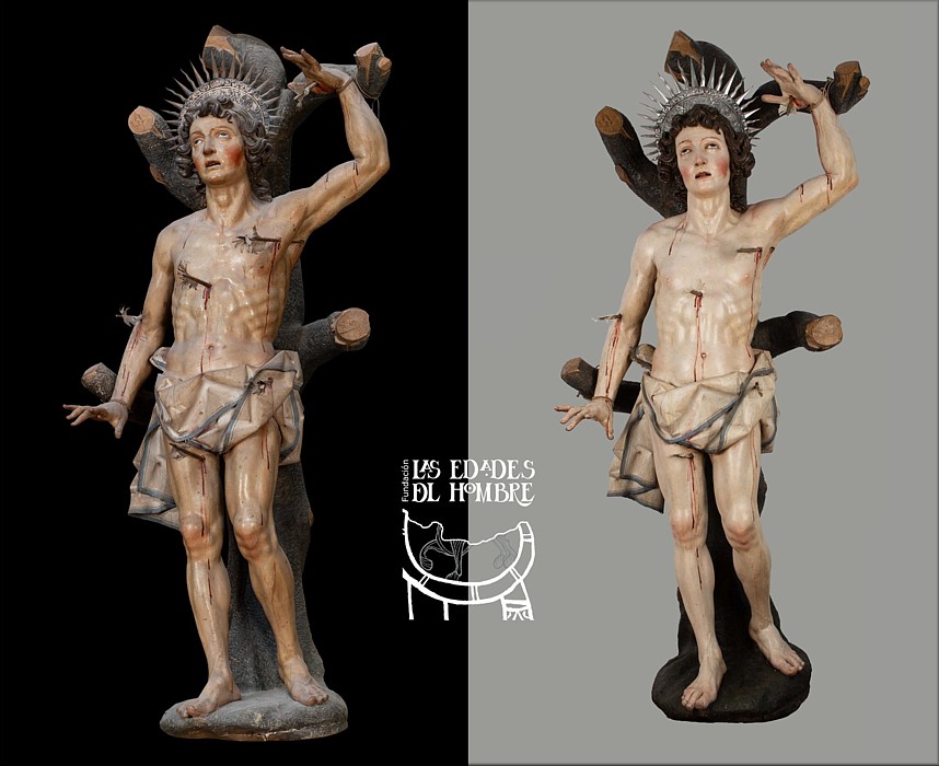 El pasado jueves 18 de septiembre la Catedral de Palencia recibió la imagen de San Sebastián, titular del retablo de la capilla del mismo hombre. Esta escultura participó en la exposición Gregorio Fernández y Martínez Montañés. El arte nuevo de hacer imágenes, celebrada en la catedral de Valladolid desde noviembre de 2024 hasta el 2 de marzo de 2025. La pieza ha sido restaurada por el Centro de Conservación de la Fundación Las Edades del Hombre, que ha procedido a realizar una limpieza de carácter general de los barnices propios de la pieza que presentaban oxidación por el paso natural del tiempo. También se han realizado los ajustes necesarios de reintegración cromática. A su vez se ha realizado un tratamiento de los atributos de la imagen y de elementos removibles: se han reconstituido las plumas naturales de las flechas, se ha limpiado la corona y se ha consolidado y anclado la puntilla textil presente en el paño de pureza. Una reciente investigación de Abel Lobato documentó la autoría de esta imagen a Francisco Fermín, oficial de Gregorio Fernández, nacido seguramente en Valladolid hacia 1599. Hasta entonces la escultura estaba tradicionalmente atribuida a Juan Antonio de Estrada, otro discípulo de Fernández. |