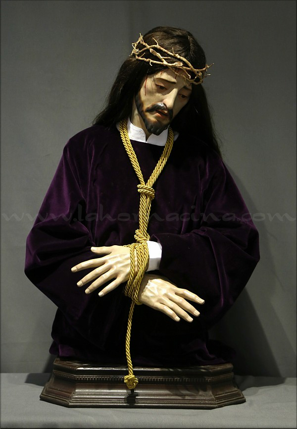 Nuestro Padre Jesús Cautivo de la Humildad. Imagen de vestir para la devoción privada, realizada por el escultor e imaginero sevillano en madera de cedro policromada al óleo. Posee brazos articulados en hombros, codos y muñecas, y lleva peluca confeccionada por Artesanía Rodríguez. |
