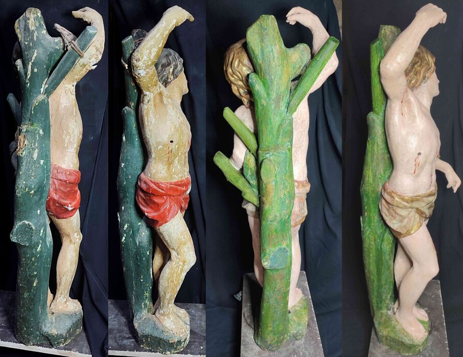 La escultura de San Sebastián del siglo XVI que recibe culto en el templo parroquial de San Pedro de la localidad de Sepulcro-Hilario (Salamanca), ha sido restaurada en estos últimos meses en el cercano municipio salmantino de Cepeda por la restauradora Alejandra del Barrio Luna (Soria, 1979). La imagen, de 120 cm de altura, presentaba un 40 % de policromía original en las carnaciones, mientras que en las zonas del cabello y el perizoma o paño de pureza estaba casi intacta. También presentaba un ataque de insectos xilófagos que había erosionado la madera. La talla de San Sebastián estaba datada en el siglo XVII, pero al someterla a este proceso de restauración se ha averiguado que realmente es del siglo XVI por la carnación tan bruñida propia de ese siglo, mientras que la carnación del siglo XVII es más mate, más realista, con una policromía más fina basada en el verismo. Además, el cabello dorado que tiene la imagen también es propio del siglo XVI. El proceso de restauración comenzó el pasado mes de mayo con un estudio estratigráfico para llevar a cabo la correspondencia de policromías y poder ver los estadios de intervención en la obra. De este modo, se han documentado tres capas polícromas: la primera, la original del siglo XVI, de carnación al pulimento y dorado al agua y corla verde; la segunda, fechada en el siglo XVIII, en la que se intervino en la mano, con carnaciones con un óleo blanco, en el perizoma un tono azul y en el tronco en el que se apoya la figura del mártir romano un óleo verde; y la tercera, en torno a finales del siglo XIX o comienzos del siglo XX, de pintura acrílica roja en el perizoma y un color marrón en el cabello de San Sebastián. Al comenzar la restauración, como la obra presentaba una fuerte alteración de laguna cromática, se decidió por criterio suprimir los repintes y conservar el original. Se ha eliminado además la goma laca original de la escultura y se ha continuado con el proceso normal en estos casos: estucado, reintegración con rigatino en trama gruesa puesto que la imagen va a ser colocada en el retablo de la iglesia parroquial y capa de protección de barniz semimate sólo en las zonas intervenidas. En agosto, la restauradora castellana dará una charla en la parroquia de Sepulcro-Hilario para explicar el proceso de restauración seguido. El coste total de la restauración ha sido de 1.600 € más IVA. La restauración ha sido seguida semanalmente tanto por el párroco como por el delegado diocesano de Patrimonio Cultural. |