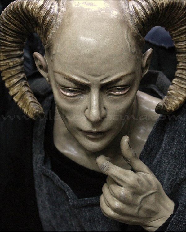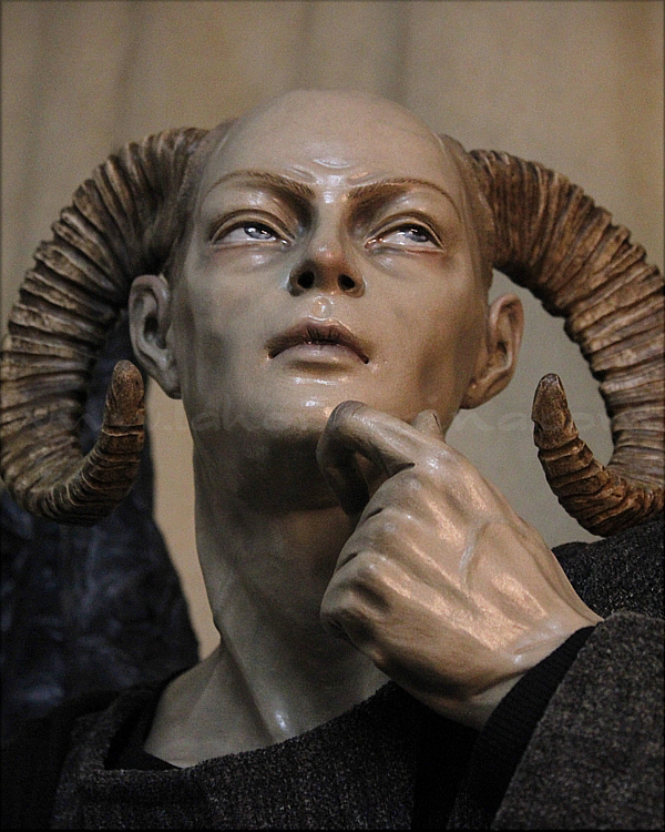 Las tentaciones de Cristo adoptan iconográficamente dos modalidades: bien sintetizadas en una o expresadas en el número evangélico de las tres. Con esta escultura, calificada por su autor como la más personal de cuantas ha realizado hasta la fecha, observamos la primera de ellas: Cristo es tentado por el diablo, que excepcionalmente se transforma en un personaje humano aunque conserva parte de sus rasgos demoniacos y horrendos. La iconografía de esta escena se remite al pasaje bíblico de San Mateo en el que se narran las tentaciones de Cristo en el desierto, tras cuarenta días y cuarenta noches de oración y ayuno. Jesús es tentado por el diablo en una situación de debilidad, tratando de hacerle caer en su propio pecado a través de métodos capciosos. |