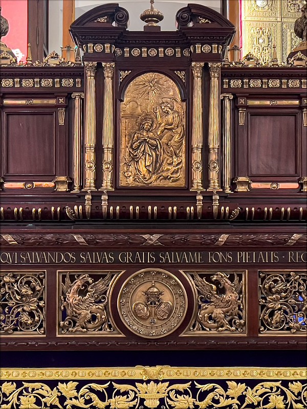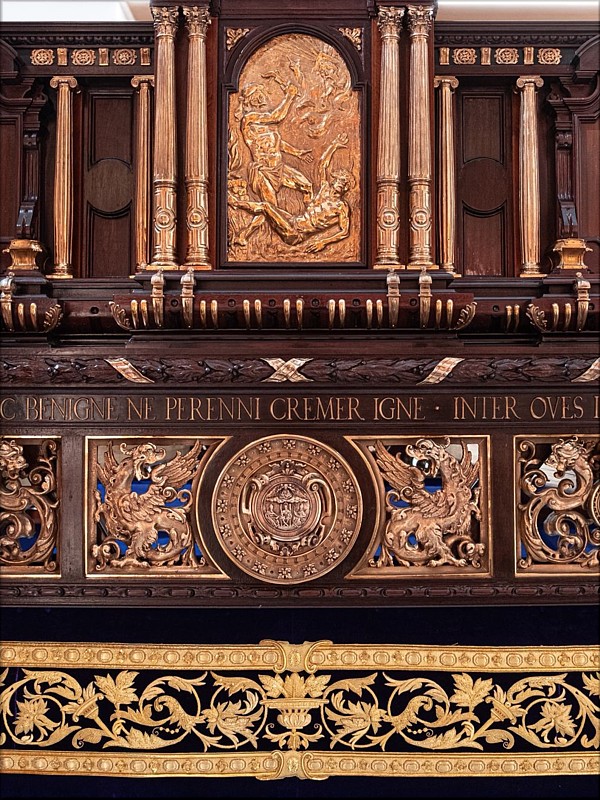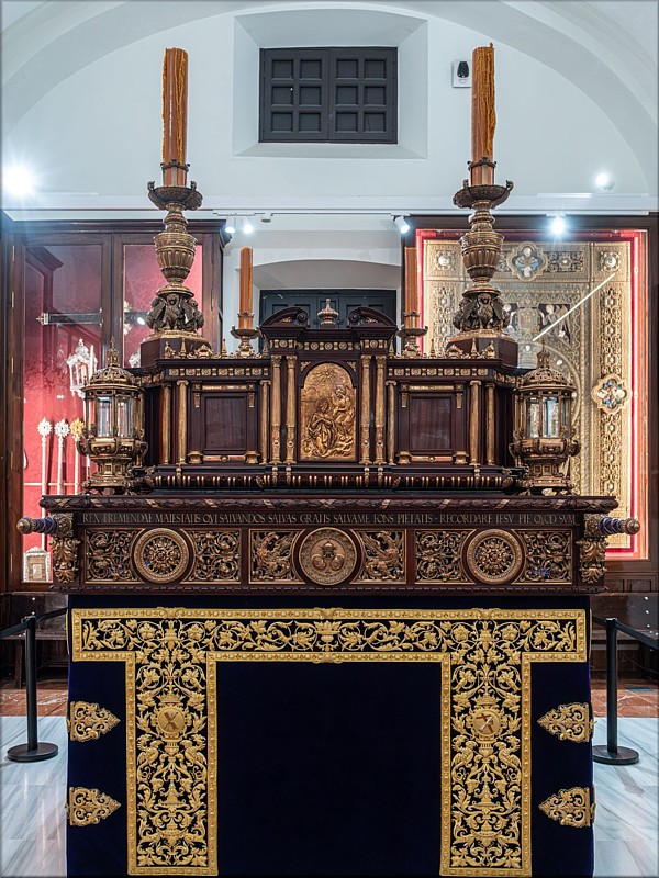 Siguiendo un diseño de Antonio Gutiérrez de León con inspiración renacentista, y bajo la dirección técnica de Andrés Luque Teruel, catedrático de Historia del Arte, el nuevo paso procesional del Cristo de la Buena Muerte, titular de la Hermandad de los Estudiantes (Sevilla), ya es una realidad que ahora se exhibe en la Casa de Hermandad (Calle San Fernando, 4) de dicha corporación de penitencia dentro del siguiente horario: lunes a viernes, de 19:00 a 21:00 horas. Las nuevas andas, proyectadas en 2022, han sido ejecutadas por varios autores: la carpintería en caoba y ébano por el tallista Óscar Caballero, la orfebrería en bronce por los hermanos orfebres Pedro y José Manuel Ramos (Orfebrería Ramos) -colaborando este último además en los bocetos-, las tallas de los respiraderos por el escultor Miguel Ángel Domínguez Caballero y los bajorrelieves centrales del canasto por el también escultor Guillermo Martínez Salazar. En los bordados de los faldones, estrenados anteriormente, intervino el Taller Santa Bárbara. |