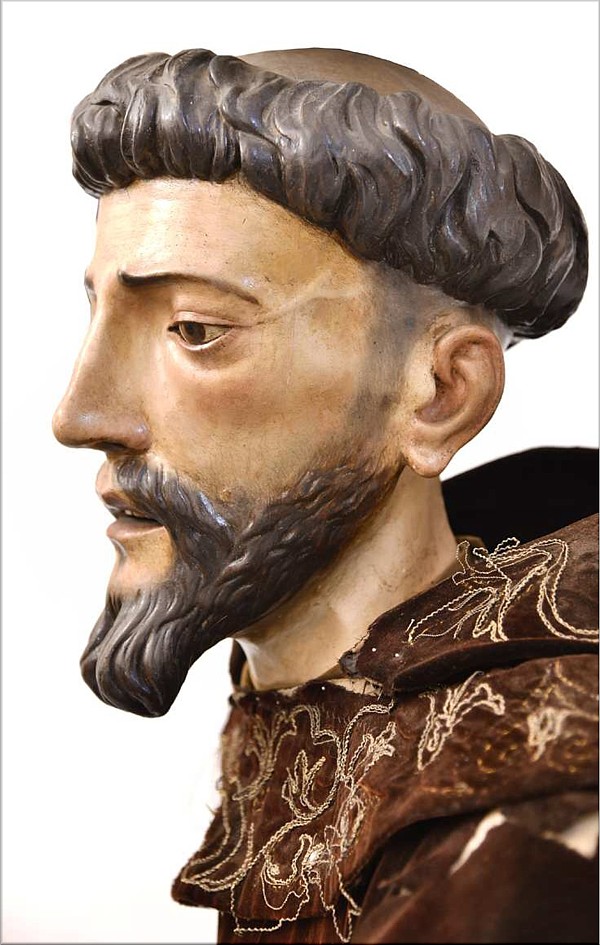 En La imagen de San Francisco de Asís de la parroquia de Nuestra Señora de la O de Chipiona, atribuible al escultor Jacinto Pimentel (h. 1660) se da a conocer por parte del historiador Francisco José Martín López la imagen de San Francisco de Asís (detalle del rostro en la imagen superior) que se venera en la parroquia de Nuestra Señora de la O de Chipiona y se propone su atribución al escultor Jacinto Pimentel (h. 1600-1676). Foto: Javier Cantos Lozano |