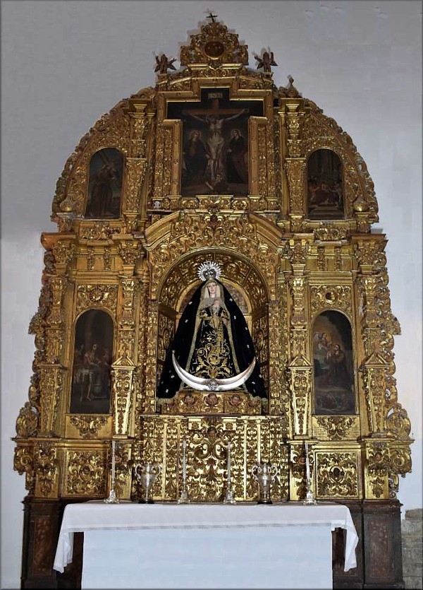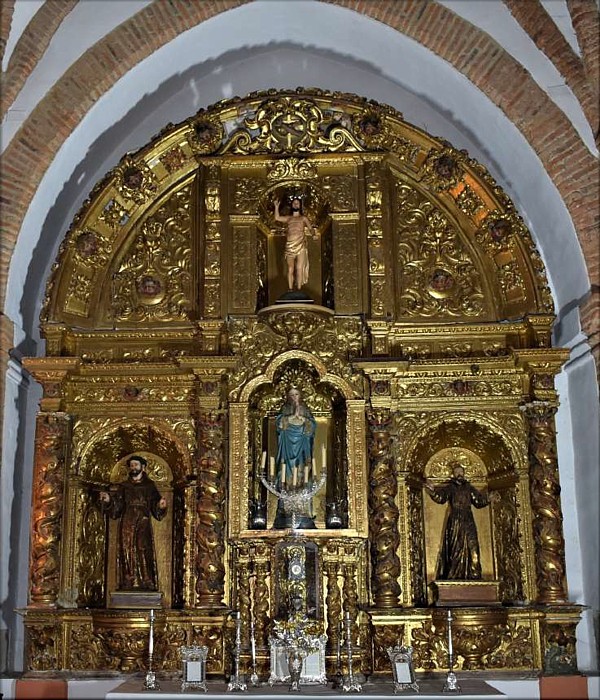 Desde finales del siglo XV existió en Cumbres Mayores (Huelva) un convento de monjas clarisas que fue demolido en la segunda mitad del siglo XIX. De su historia apenas se conocen datos, pero sí quedan algunos interesantes restos de su fábrica y mobiliario. José María Sánchez-Cortegana, en su artículo Dos retablos del extinguido convento de Santa Clara de Cumbres Mayores (Huelva): autorías y localización, aporta información inédita sobre la historia de este cenobio e identificamos dos retablos de lo que fue su ajuar litúrgico, hoy emplazados en la parroquia de San Miguel de la población. Fotos: autor |