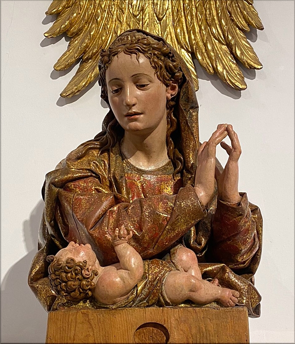 Esta obra del Museo Catedralicio de Zamora, donación del arcipreste Bartolomé Chillón en 1946, procede del desaparecido templo toresano de San Marcos. Navarro Talegón apuntó a que podría ser obra conjunta de Sebastián Ducete y Esteban Rueda, pero más adelante Vasallo Toranzo afirmó que es creación exclusiva de Ducete. Por tanto, con total certeza se atribuye finalmente a este último maestro de la Escuela de Toro, término acuñado por María Elena Gómez Moreno para referirse al grupo de esculturas realizadas por los citados escultores de dicha localidad zamorana. La Virgen de Belén es una escultura de busto tallada en madera de pino policromada, que se caracteriza por detalles como las aniñadas y bellas facciones, los elaborados mechones del cabello, parcialmente oculto por la toca, y el estilo alatonado de los pliegues, entre otros. La pieza se expuso en la primera edición (1988) de la muestra "Las Edades del Hombre" en Valladolid. En 2002 viajó hasta Nueva York, donde formó parte de la exposición "Tiempo de Esperanza". Fue restaurada entre 2015 y 2016 por Patricia Ganado debido a las alteraciones sufridas a lo largo de los años por la exacerbada devoción que se le profesaba, especialmente por las mujeres embarazadas o que acababan de dar a luz. Tal era el fervor hacia la imagen que, durante la restauración, se apreciaron multitud de agujeros que se atribuyen a la colocación de relicarios o exvotos que le llevaban los fieles. Asimismo, en la zona del cuello de la Virgen, se observaron rozaduras, posiblemente provocadas por los pendientes largos, como los que usaban las mujeres toresanas, que luciría. Especialmente dañinas fueron las capas de aceite que se le habían aplicado y que provocaron abrasiones en los estofados. Por otro lado, la peana estaba recubierta con papel de latón que tapaba los dorados originales. La mencionada restauración de Patricia Ganado consistió en la eliminación de dichos añadidos y la recuperación de la policromía original. También se repusieron tres dedos al Niño y dos a la Virgen, respetando la dirección que marcaba la pieza. |