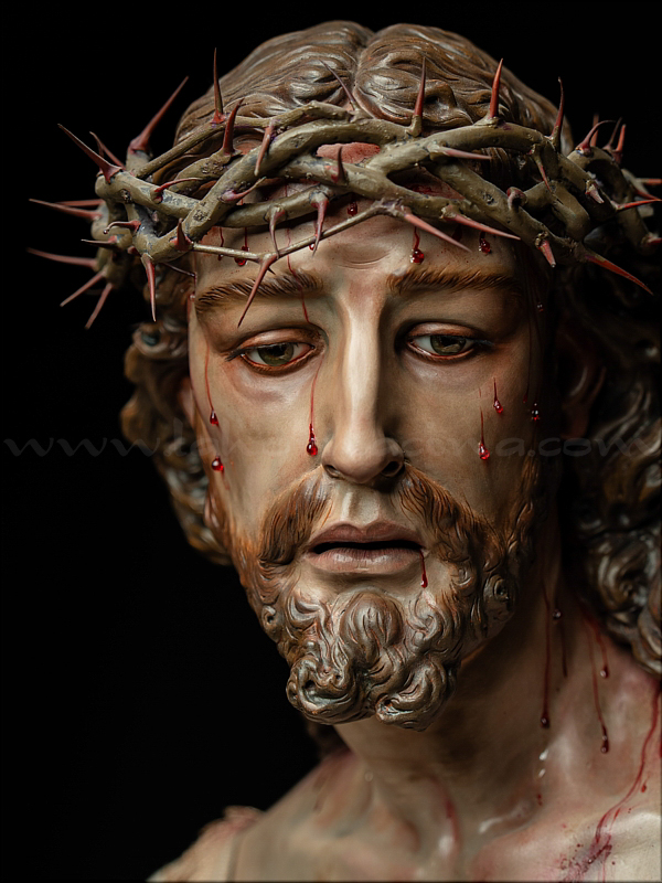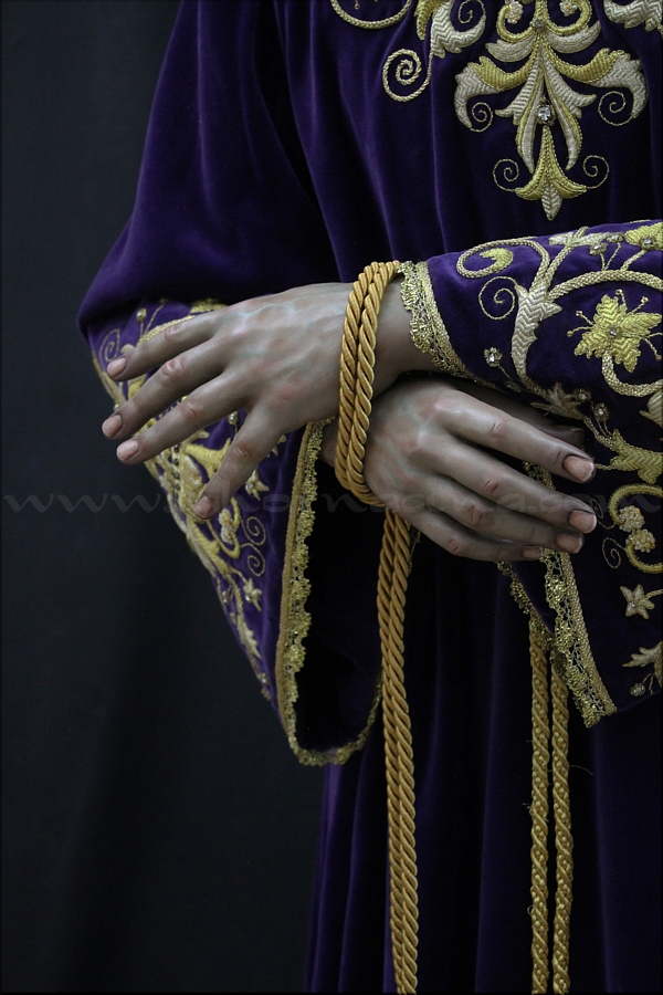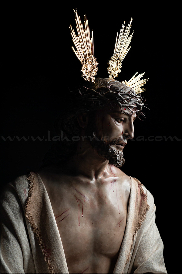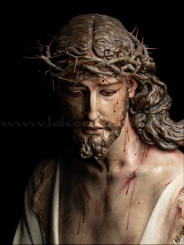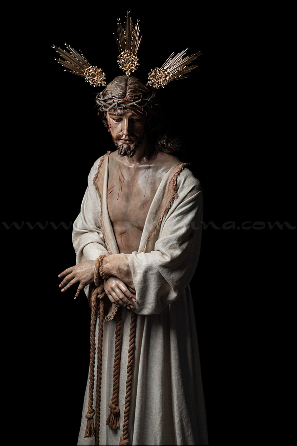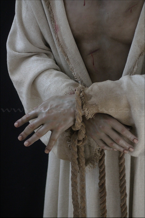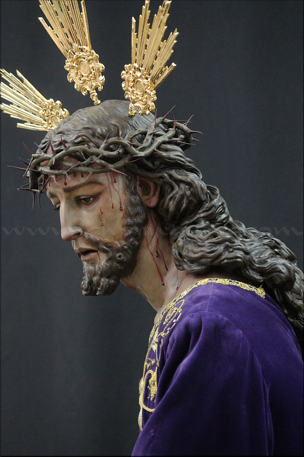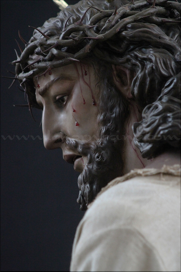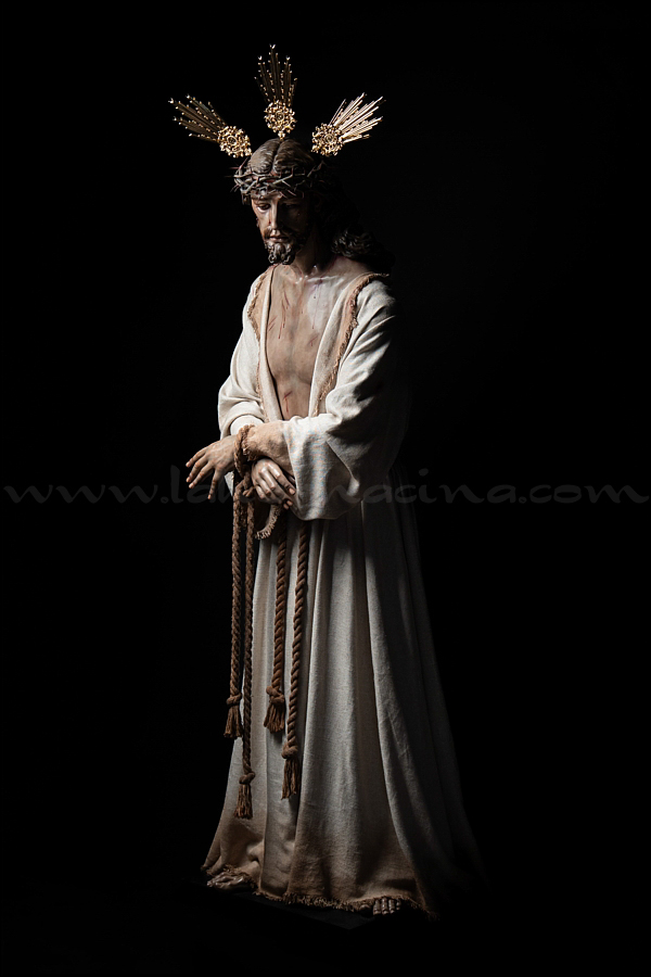 Señor de la Humildad (Jesús Cautivo - Sentencia de Cristo) Hoy ha sido presentada y bendecida en la localidad alicantina de Benejúzar la última obra del escultor torrevejense Víctor García Villalgordo. Se trata del Señor de la Humildad, imagen que formará parte del primer paso de misterio de la recién fundada Hermandad de la Sentencia. Este futuro conjunto procesional estará compuesto por cinco figuras y recreará el pasaje evangélico de Jesús en el momento de su sentencia de muerte. La talla del Señor ha sido realizada en madera de cedro real, alcanzando una altura de 170 cm, siguiendo los cánones clásicos de la imaginería procesional. Pese a la tragedia, el autor ha querido presentarlo por encima de ella, sin reaccionar ante la furia homicida de unos verdugos que lo condenan a muerte; pues como afirmó Sheed en una de sus apologías, estaba redimiendo a la raza humana, desarrollando una actividad incomparablemente mayor que la que cualquier otro hombre haya hecho nunca, entregado de lleno a la más grandiosa tarea jamás realizada en la tierra. El acto de bendición se ha llevado a cabo en el templo parroquial de Nuestra Señora del Rosario de Benejúzar, lugar donde, desde hoy, el Señor de la Humildad recibirá culto de forma permanente. La joven Hermandad de la Sentencia celebrará mañana una salida extraordinaria de la imagen por las calles de Benejúzar, con el objetivo de presentarla a sus vecinos y dar la bienvenida pública a este nueva representación de Jesús Cautivo. |