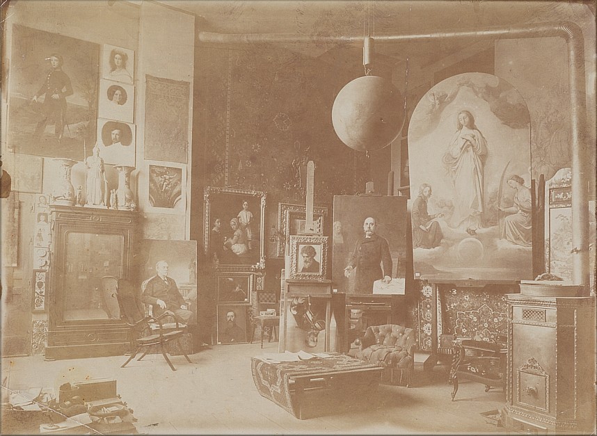 A través de la fotografía el estudio del artista se convierte en espacio cargado de valor simbólico donde convergen la observación, la enseñanza y el intercambio. También permite seguir a los autores en otros escenarios de creación que se transforman en prolongaciones de sus talleres. La exposición presta especial atención a la presencia femenina en estos ámbitos, con el retrato de María Luisa de la Riva en su estudio parisino, la pintora Fernanda Francés y las alumnas de Cecilio Pla, entre ellas Carolina del Castillo, y se detiene en fotografías que registran las etapas de creación de una misma obra. Asimismo, El universo del artista ante la cámara configura una cronología material que permite seguir la evolución de técnicas y soportes: de los papeles albuminados y los retratos en formato carte de visite o tarjeta París, a procesos como el platinotipo, el ferrotipo, el autocromo o las copias a la gelatina. La diversidad de procedimientos no solo dialoga con la multiplicidad de autores y situaciones representadas, sino que también da cuenta de las transformaciones tecnológicas y estéticas que, desde mediados del siglo XIX hasta las primeras décadas del XX, redefinieron la manera en que los artistas construyeron y proyectaron su imagen y su universo creativo. |