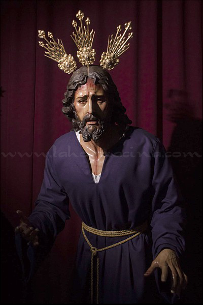 Siempre hemos pensado que la energía propia del ser humano se transmite a través de obras como las esculturas y de materiales como la madera. Podríamos dar muchos ejemplos, pero por citar uno muy cercano, mencionaremos a Luis Ortega Brú y su famosa cercanía con el material, especialmente la madera. Si no la hubiera tenido, no existirían esas imágenes tan expresivas y vivas de Brú, en las que se palpa tanto sensibilidad como temperamento. Totalmente. Siempre se dicen que con el barro pones y quitas muy fácilmente, pero es que la madera es igual: también pones, haces plano, pegas madera y sacas a golpe de gubia. Uno también puede expresar mucho con la madera. Ortega Brú, como todos, hacía sus modelos de barro, pero están poco terminados, era al pasarlos a la madera cuando les daba esa terminación que le hacía único, y encima con una soltura impresionante. Si cualquier artista del siglo XVII viera lo que hoy en día se hace, se echaría las manos a la cabeza, nos pegaría un palo y nos diría: "¡Pero esto como puede ser!". Mariano, empezaste muy temprano, lo has dicho antes. ¿Qué te llevó a ser imaginero? Empecé de niño con la plastilina, como muchos compañeros. A mí me encantaba la plastilina. Lo que yo hacía era belenes para las vecinas, ellas me compraban las plastilinas y yo les hacía los belenes. Hacía incluso algunas figurillas de dibujos animados que salían por televisión y cosas así. También dibujaba mucho. En casa había un ambiente cofrade normal para un sevillano; de hecho, tengo un hermano que es capataz, pero lo que me tiró más hacia la imaginería, aparte que me guste la Semana Santa, es el modelado en 3D: mover las imágenes, ver sus lados tridimensionales... todo eso siempre me llamó mucho la atención, además que me entretenía muchísimo. De pequeño, como he dicho, con unos 3 años de edad o así, modelaba plastilina muchas horas y lo hacía con gran soltura. Un poco más tarde empecé con el barro; de hecho, cuando empecé en la Escuela de Artes Aplicadas, el primer trimestre saqué piezas de modelado porque en mi casa ya modelaba por mi cuenta. Incluso me dieron matrícula de honor en modelado. La verdad es que desde primera hora yo sabía muy bien lo que quería, aunque a mi padre, al principio, no le gustaba que me dedicase a esto por la dificultad que tiene el mundo del arte, pero después me dio su apoyo. Y aparte de los Hermanos Caballero, ¿estuviste en otros talleres? Estuve, como he dicho, en la Escuela de Artes Aplicadas, y después fui alternando mis estudios con los Hermanos Caballero para aprender también la talla. La Escuela no la terminé, me salí antes, porque yo era por entonces muy nervioso y quería hacer muchas cosas, y en la Escuela se lleva un ritmo del que me acabé cansando. Como ya estaba en el taller de talla en madera, continué con ellos hasta que me empezaron a salir los primeros trabajos. Después me busqué mi lugarcito y poquito a poco hasta ahora. Yo abrí mi taller con 17 años, fue la primera vez que tuve un taller, y hasta ahora, que tengo 44, sigo dedicándome a la imaginería. Y siempre con mucha discreción. Nunca has sido un imaginero mediático, ni mucho menos "de impacto", y nunca te ha faltado el trabajo. Has estado ahí siempre como una hormiguita y siempre reservado tanto laboral como personalmente. Es que no me gusta. He podido aprovecharme mucho de las cámaras de televisión, sobre todo trabajando con los Hermanos Caballeros, pero cada vez que me enteraba que una televisión iba a ir al taller, cogía mi mochila y me iba por la otra puerta. Manolo Caballero siempre me lo reprochaba y me decía que era una pena con el arte que yo tenía y que yo así no iba a llegar a algún sitio, pero soy muy tímido en ese aspecto y me pongo muy nervioso delante de una cámara o en uno de esos programas de cofrades que se suelen hacer sobre Semana Santa. Llevo mal el aspecto comercial en ese sentido. Será que he sido conformista y no he querido aspirar a nada más que a mantenerme de lo que me gusta. Me conformo con vivir y ser feliz con lo que hago. Tu arte siempre ha tenido un aspecto bastante devocional que engancha mucho con el público, pues no solamente bebe de los maestros clásicos, sino también de esos imagineros sevillanos del siglo XX que aspiraban más a una conexión con los devotos que a las proezas artísticas que los hicieran muy destacables o reconocidos. No he querido salirme de lo clásico porque aquí llevamos siglos de historia en imaginería, aunque también es verdad que siempre se aporta algo. Nunca me ha gustado salirme de la imaginería típica sevillana. Los antiguos imagineros tuvieron en sus manos el poder hacer cosas mucho más realistas de las que hicieron, pero se decidieron por ese punto intermedio en el que se muestra una plástica más cercana al naturalismo que al realismo. Yo creo que puedo estar en ese punto, me gusta que una imagen parezca natural, pero que no llegue al hiperrealismo. Los trabajos hiperrealistas son maravillosos, pero no encajan mucho en la imaginería procesional, por lo menos no en esta zona. Siempre he cuidado la delicadeza en el modelado, la placidez de las imágenes... lo he preferido a obras más transgresoras. También es verdad que hay encargos que te permiten salir más de lo que normalmente haces, pero esto también depende de los clientes, que en la mayoría de ocasiones te encasillan. Evidentemente, ellos ven el estilo de tu trabajo y eso es lo que quieren encargarte, si bien no hay que olvidar que un artista está abierto a realizar cualquier tipo de obra. ¿Hay alguna obra de la que te sientas especialmente satisfecho? Una que, además, no es ninguna imagen titular: la imaginería del paso del Gran Poder de Dos Hermanas, porque en el canasto hay relieves, evangelistas, arcángeles, ángeles y capillas, o sea un conjunto que quedó muy bien y del que me siento muy satisfecho. También estoy muy orgulloso del Cristo de la Vera Cruz 