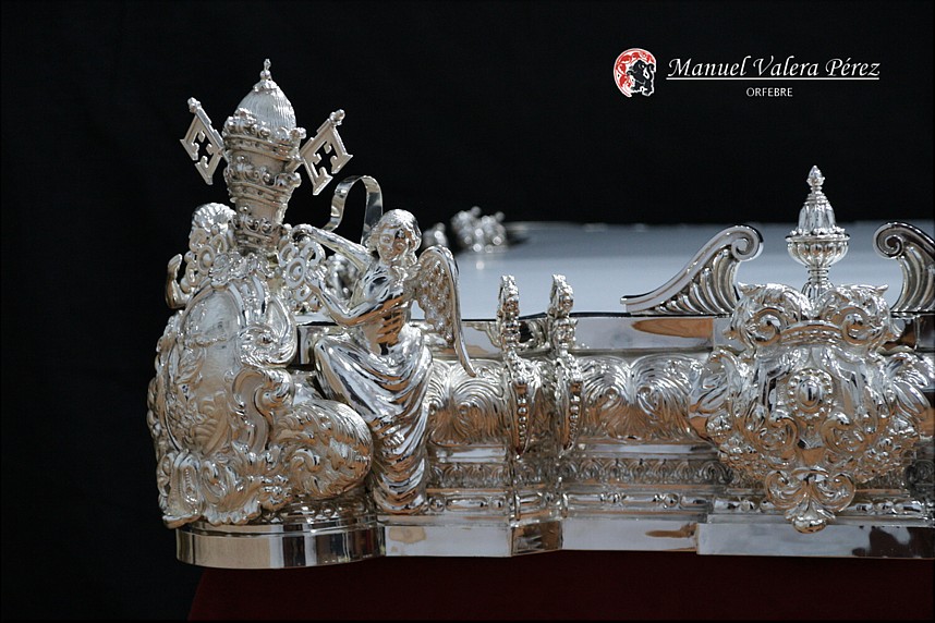 Supongo que será una lección, y también una inspiración, restaurar una obra clásica de, por ejemplo, Juan de Arfe o Damián de Castro, al que has nombrado en repetidas ocasiones. Es la escuela principal. Nosotros hemos aprendido, básicamente, en las restauraciones. Es como si los propios Damián de Castro o Juan de Arfe te dieran un máster. Eso es impagable. Yo hasta daría dinero para poder restaurar ciertas piezas. Ahí sí que se disfruta. ¿Y con qué obra de la orfebrería clásica te quitas el sombrero? La custodia de Fuente Obejuna, la custodia que se conserva en el tesoro de la Catedral de Córdoba, toda la obra de Juan de Arfe... Cuando has estudiado las obras de orfebrería clásica de los grandes maestros, te das cuenta de que no hay ninguna duda de que son artistas. Cuando el propio Arfe te escribe en un tratado sobre metales, medidas, proporciones, arquitecturas, estamos hablando de un gran arte, arte del bueno no, del mejor. Quién dice que son artesanías o artes menores, eso está desfasadísimo. Los términos de artes mayores y artes menores ya no existen. Ningún crítico de arte contemporáneo te los va a decir. Por lo que has dicho antes, parece que te gusta experimentar con nuevos materiales. Me encanta. Todo lo que sea un reto, hacer algo distinto, es lo más bonito de nuestro trabajo. Para una obra como el conjunto de un paso de palio tienes que buscar siempre lo mejor y sin perjuicio ninguno. En la variación de los materiales está la sensibilidad. La calidez de ciertos materiales, por ejemplo, compensa la frialdad del metal, y eso es muy bonito. También es muy difícil, sobre todo en un mundo donde estamos acostumbrados a ver modelos repetidos hasta la saciedad, lo que da muy poco margen de experimentación. No entiendo que no se pueda hacer arte moderno dentro del arte religioso aplicado. En Córdoba se sigue empleando la denominación de platero, que lamentablemente está en desuso. Para mí ser platero es un orgullo. Todos los libros de mi biblioteca, además, hablan de plata, platería y plateros. No solo no me molesta ese término, al contrario, es un honor. ¿Cómo ves actualmente la orfebrería (o la platería) a nivel general? Ya sé que hoy el mundo se mueve por las redes sociales, yo mismo pongo mis cositas en ellas; pero tal como las pongo, salgo corriendo, no me da tiempo a ver el panorama, ni qué dicen ni dejan de decir. Es solo una visión secundaria sin referencias que no te permite ver bien lo que se está haciendo. Mi hijo está más pendiente por ser una generación más joven, y es él quien me enseña la mayoría de las cosas que veo. También cuando visitas la Semana Santa de otras ciudades, como Málaga, vas viendo cosas, y la verdad es que me gusta lo que veo. Por otro lado, y que conste que me aplico el mismo consejo, creo que los jóvenes tienen muchas ganas de triunfar, yo diría que demasiadas, y esto es una carrera muy lenta. Abarcar más de lo que puedes te pasa factura, y lo digo porque a mí también me ha pasado. También cuando he visto que el nombre del taller puede quedar mal por tal o cual encargo, he preferido no hacerlo. Hay que tener mucho cuidado con esto. Esto es un trabajo muy ligado al prestigio, al que las prisas tampoco le vienen bien, y ese prestigio, que has ido ganando poquito a poquito, puedes perderlo un buen día y volver atrás con solo un resbalón. |