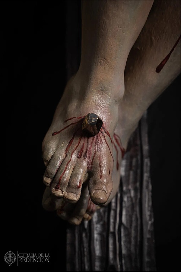 ?Los trabajos han sido realizados en el Santo Cristo de la Redención, crucificado titular de la cofradía leonesa del mismo nombre. La obra, fechada hacia 1570, se relaciona con el estilo del escultor e imaginero vasco Juan de Ancheta, principal iniciador de la escuela escultórica del romanismo vasconavarro creada durante el último tercio del siglo XVI. La intervención comenzó con un exhaustivo diagnóstico científico. El uso de la tomografía axial computerizada junto con los rayos X reveló la precariedad de los ensambles internos de esta talla en madera policromada, así como otras debilidades estructurales. Por otro lado, los análisis químicos revelaron que la policromía actual de la imagen no es la original del siglo XVI, sino una aplicada en el XIX que se ha decidido conservar, eliminando únicamente los repintes oxidados de intervenciones recientes que distorsionaban la expresión del Cristo. Aguado ha ejecutado una reintegración polícroma que ha devuelto la verdad anatómica a puntos críticos como las llagas, que ahora lucen un realismo sobrecogedor. ?Asimismo, el rostro ha recuperado su profundidad gracias al delicado tratamiento de la policromía, cuya vibración cromática dota a la imagen de una renovada luz. Además, se ha tallado un nuevo soporte que garantiza la estabilidad y realza la imponente anatomía de la talla, y se han incorporado nuevas espinas a la corona para recuperar la silueta original. Asimismo, se ha intervenido en la reliquia de la talla de Nuestro Padre Jesús de la Redención en el Beso de Judas (Sevilla) que figura en la cruz, asegurando así su conservación para las próximas décadas. |