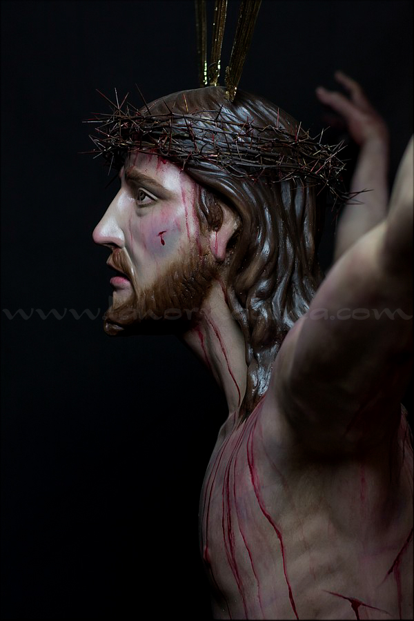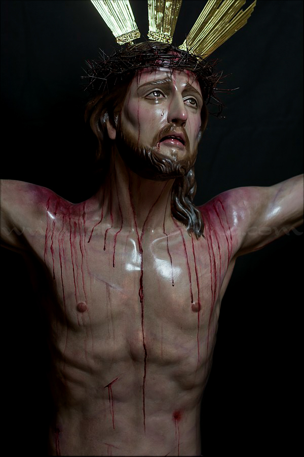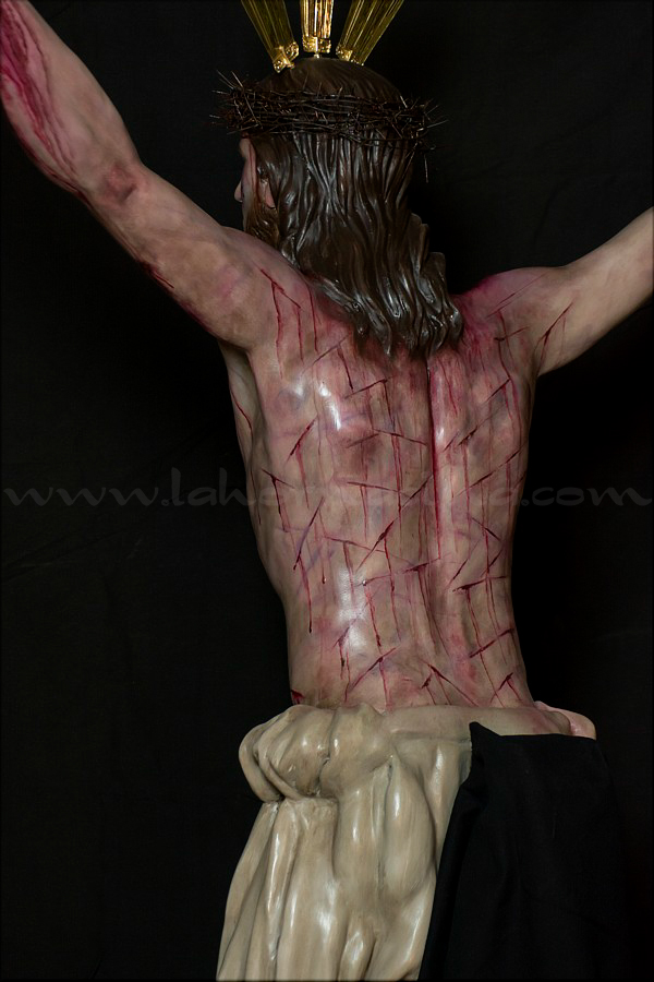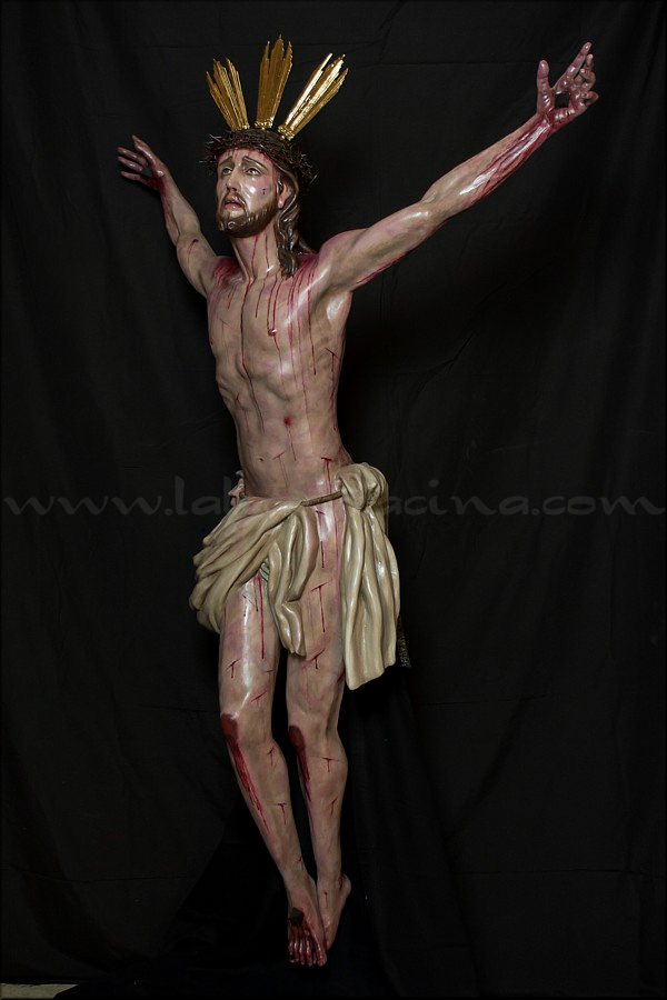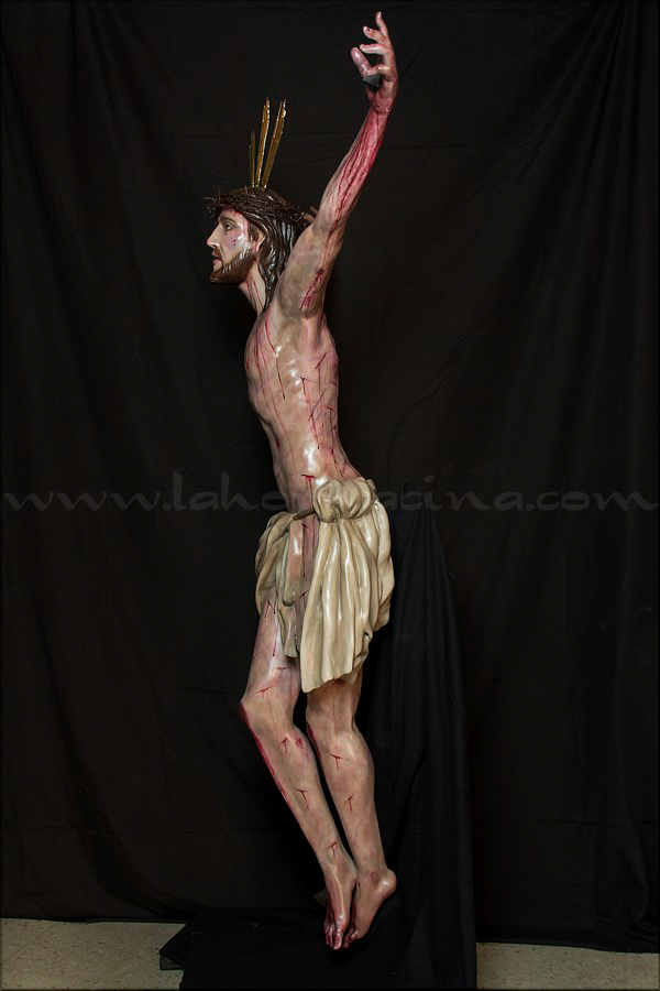 Santísimo Cristo de Lombardía Esta obra ha sido realizada por el escultor e imaginero malagueño en madera de cedro con una altura de 188 cm. Sigue las técnicas tradicionales de la imaginería religiosa con una policromía llena de matices y veladuras. La cruz arbórea, tallada también en cedro, presenta las llagas doradas al igual que el titulus crucis. |
