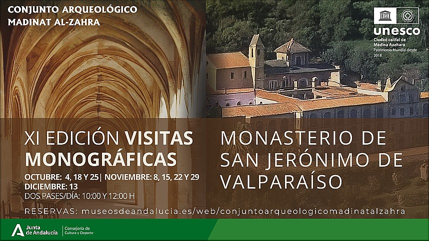 El Conjunto Arqueológico Madinat al-Zahra (Medina Azahara) programa la XI Edición de las Visitas Monográficas al Monasterio de San Jerónimo de Valparaíso. Colaboran la Propiedad de este inmueble protegido y el Departamento de Historia del Arte, Arqueología y Música de la Universidad de Córdoba. Durante 8 jornadas, entre el 4 de octubre al 13 de diciembre, se ofrecerán 16 visitas guiadas por especialistas, en las que el público visitante podrá disfrutar de un conjunto arquitectónico excepcional y estrechamente vinculado a la historia del Conjunto Arqueológico, a través de un itinerario por espacios únicos y no visitables el resto del año. El itinerario por el monasterio será conducido por especialistas en Historia del Arte bajo la coordinación de la profesora titular del Departamento de Historia del Arte, Arqueología y Música, la doctora María de los Ángeles Jordano Barbudo, que mostrarán a los visitantes el compás, la iglesia recién restaurada, el claustro, el patio de novicios, la sala capitular, el balcón de la fachada y las capillas claustrales. El Monasterio de San Jerónimo de Valparaíso, cuya fundación se remonta a comienzos del siglo XV, constituye uno de los principales ejemplos de la arquitectura y el arte gótico en Córdoba que, en ese periodo, se convirtió en el epicentro productivo de esta zona de las estribaciones de la Sierra de Córdoba. Tras su desamortización en 1836, el edificio se abandonó hasta que en 1912 fue adquirido por José María López de Carrizosa y Garvey, Marqués del Mérito. A partir de este momento, sus nuevos propietarios comenzaron la labor de restauración y recuperación que continúa en nuestros días y, por otro lado, se procedió a su protección jurídica como Monumento en 1980. En la actualidad, se encuentra comprendido dentro del ámbito de catalogación como Bien de Interés Cultural de Madinat al-Zahra. Las visitas incluidas en este programa son gratuitas y están diseñadas para público joven y adulto. El aforo será de 25 personas. La asistencia a la actividad es gratuita y requiere inscripción previa. El plazo de inscripción se abrirá cada lunes previo al sábado de visita a las 10:00 horas y se cerrará el viernes de la misma semana a las 12:00 horas. Las fechas de las visitas son las siguientes: en Octubre, los sábados 4, 18 y 25; en Noviembre, los sábados 8, 15, 22 y 29, y en Diciembre, el sábado 13. Se realizan dos pases al día, con una duración aproximada de 105 minutos cada uno y distribuidos en el siguiente horario: primer pase de 10:00 a 11:45 horas, segundo pase de 12:00 a 13:45 horas. |