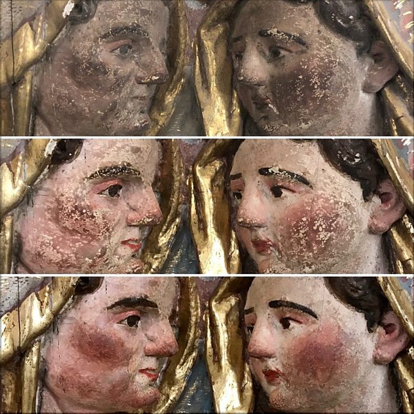 Detalles del relieve. Estado inicial, proceso de limpieza y estado final |
