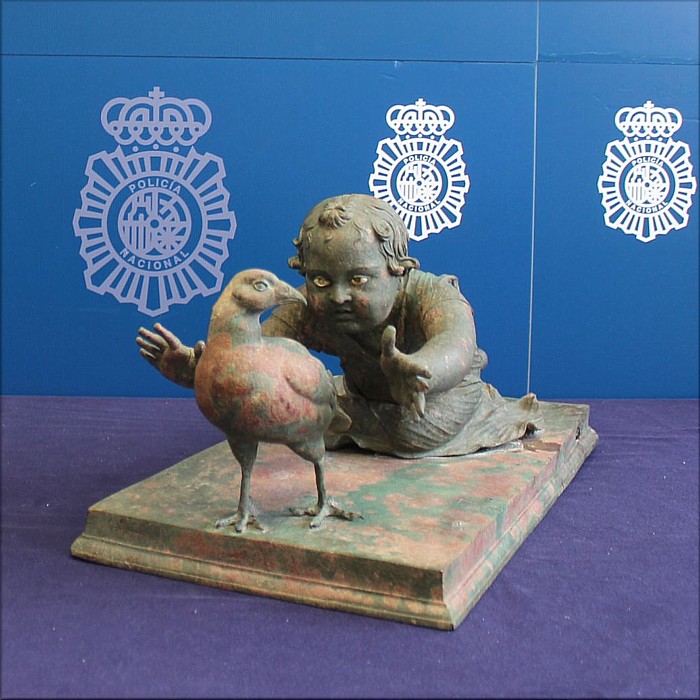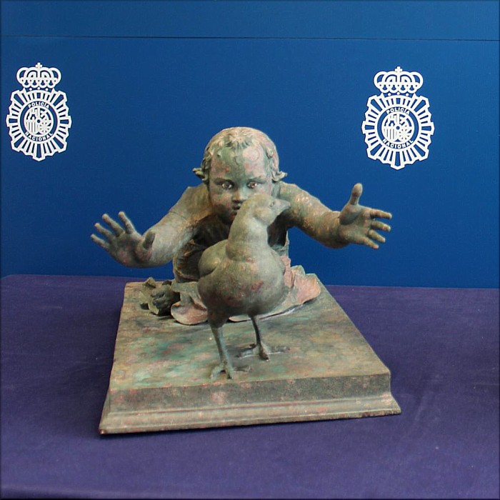 La Policía Nacional ha recuperado dos grupos escultóricos de bronce datados entre los siglos I y II d.C. que salieron ilegalmente del país. Las piezas de época romana y notable singularidad por su calidad, dimensiones e iconografía, habrían sido expoliadas de un yacimiento del sur de la península entre los años 2007 y 2008 y subastadas en 2012 en Christie's por varios millones de euros tras ser blanqueado su origen y procedencia ilegal. El coleccionista estadounidense que las adquirió de buena fe, una vez tuvo conocimiento de que su origen era un expolio arqueológico, decidió cederlas de manera irrevocable y gratuita al Estado español. Las esculturas han sido depositadas al Museo Arqueológico Nacional (MAN), en un acto que ha contado con la presencia de responsables de la Policía Nacional y la directora general de Bellas Artes del Ministerio de Cultura. La investigación se inició por parte de la Brigada de Patrimonio Histórico de la Policía Nacional, tras tener conocimiento de una información relativa al hallazgo, entre los años 2007 y 2008, de varias piezas romanas de bronce de gran relevancia que habían permanecido enterradas en tierras de labor, sin determinar con exactitud su ubicación dentro de la geografía española. Posteriormente estas piezas habrían salido ilícitamente del país para ser restauradas y, una vez blanqueado su origen, introducidas en el mercado legal del arte europeo, donde acabaron siendo subastadas en 2012 y adquiridas por un particular. Se trata de una pareja de grupos escultóricos de notable singularidad, tanto por su calidad artística y dimensiones como por su iconografía, al representar dos niñas de corta edad persiguiendo sendas perdices, una escena poco habitual en la escultura romana conservada hasta la actualidad. Que una escultura de bronce romana llegue a nuestros días es algo extraordinario, por tanto, que lo haga una pareja completa con sus bases de metal incluidas, es absolutamente excepcional. La última constancia documental sobre la existencia de estas obras se remonta a 2015, cuando aparecen expuestas en un lugar destacado del Metropolitan de Nueva York. |