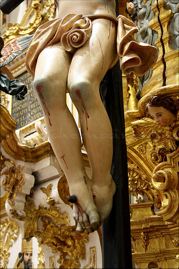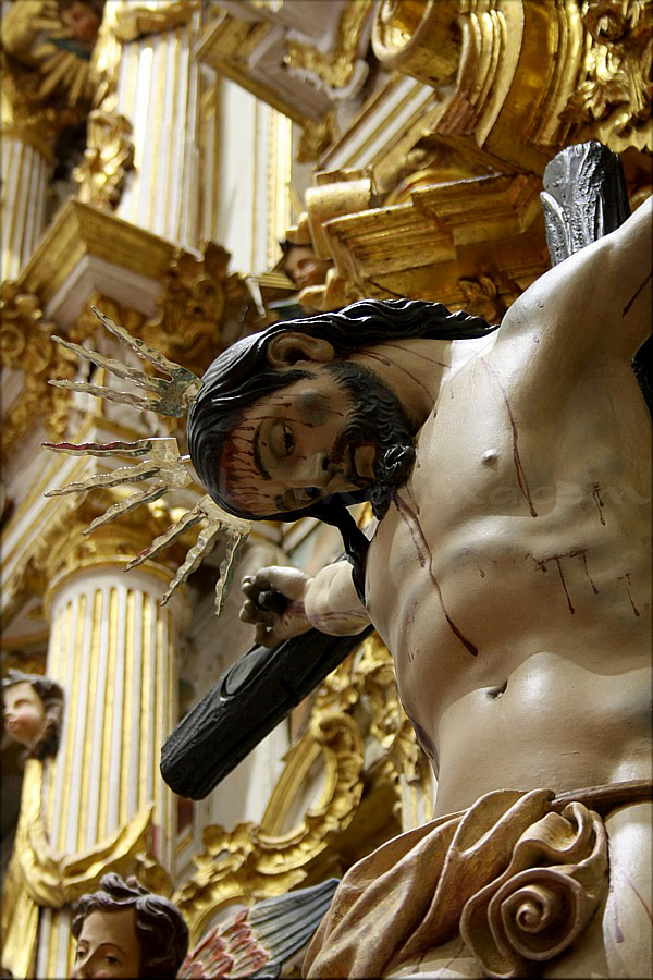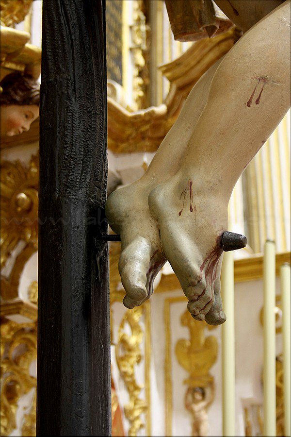 La intervención ha sido realizada en la imagen del Santísimo Cristo de la Misericordia por alumnos en prácticas curriculares del Grado en Conservación y Restauración de Bienes Culturales de la Facultad de Bellas Artes de la Universidad de Sevilla, dentro de su periodo formativo. Los trabajos en este crucificado que actualmente recibe culto en la iglesia estepeña de Santa María la Mayor se han desarrollado bajo la dirección y supervisión de los técnicos especialistas del Arzobispado de Sevilla, garantizando en todo momento el rigor metodológico y el cumplimiento de los criterios profesionales de la disciplina. En el año 2009 atribuimos a Andrés de Ocampo este espléndida imagen, situada entonces en la escalera de acceso al camarín de la Virgen de la Asunción, patrona de Estepa, en la iglesia del mismo nombre construida a mediados del siglo XVII, aunque el camarín y la profusa decoración pictórica del interior corresponden al XVIII, centuria en que también se restauró la imagen titular y se labró en piedra la portada de los pies. Desde esa fecha reclamamos una urgente intervención, debido a su deficiente estado de conservación, con el fin de reparar los daños, eliminar repintes y otros añadidos, y averiguar así nuevos datos sobre la historia y las características de su técnica y materiales. |
