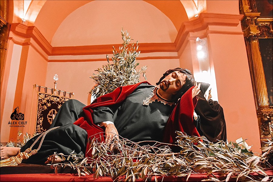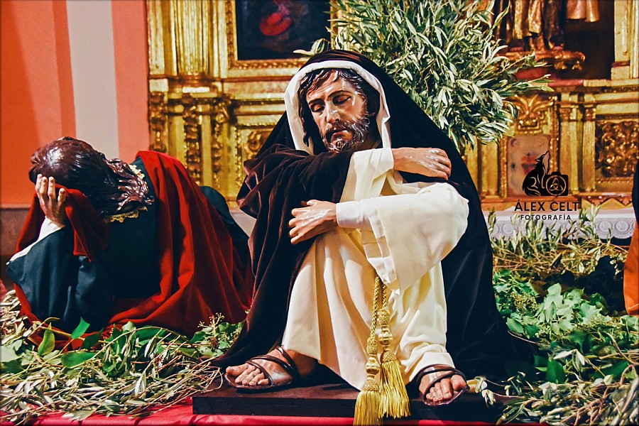 Con motivo de su 75 aniversario, la cofradía soriana de la Oración en el Huerto ha estrenado las tallas de los apóstoles Pedro, Santiago y Juan, obras del escultor e imaginero Álvaro Flores Rojas (Sevilla, 1979), que vienen a completar el misterio procesional de dicha corporación de penitencia. El acto de presentación y bendición de las obras, labradas con notable realismo y expresividad, tuvo lugar el pasado sábado, 22 de febrero, en la Iglesia de los Carmelitas Descalzos. Los apóstoles están representados según los criterios habituales del referido pasaje pasionista: durmientes bajo un olivo, ajenos por tanto a la agonía del maestro en Getsemaní, y simbolizando las tres edades del hombre, de forma que Juan encarna la juventud, Santiago la madurez y Pedro la ancianidad. Las tres nuevas tallas son de vestir, en madera policromada a tamaño natural, y acompañarán en el paso a las de Cristo y el ángel confortador, ambas del año 1898 de autor anónimo catalán. |