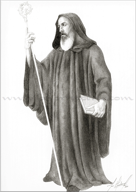 VIDRIERAS Conjunto de cartones preparatorios para cuatro vitrales que decorarán la nueva capilla del Hogar Villa del Carmen en La Orotava (Santa Cruz de Tenerife), que representan las figuras de San Francisco de Asís, Santa Clara de Asís, Santa Escolástica y San Benito, junto a una vidriera central con la Sagrada Familia extraída de un lienzo también de Josué Hernández realizado en 2017. Para esta capilla, el autor también ha diseñado la mesa de altar, bancos y el retablo que preside y decora dicha estancia. |