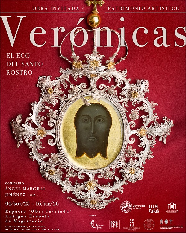 El Espacio Obra Invitada de la Universidad de Jaén (Antigua Escuela de Magisterio) acoge hasta el 16 de febrero de 2026 la muestra de patrimonio artístico Verónicas. El eco del Santo Rostro, que presenta una selección de copias del Santo Rostro de la Catedral de Jaén, las denominadas "verónicas", realizadas en los más variados soportes y técnicas, procedentes de diversos puntos de la geografía española (Benavente, Badajoz, Sevilla y Carmona). La Universidad de Jaén (UJA), desde el Vicerrectorado de Cultura, se une así a la celebración del presente año jubilar mediante iniciativas de gran interés, vinculadas al fenómeno de la peregrinación en el ámbito particular del patrimonio cultural jiennense. "Se trata de unas piezas que gozan de un gran valor artístico y devocional y que además son un excelente testimonio de la fuerza y expansión de la devoción a la reliquia jiennense", aseguró la vicerrectora de Cultura, Marta Torres, en su inauguración. La muestra está comisariada por Ángel Marchal Jiménez, doctor en Patrimonio por la Universidad de Jaén y la Universitá degli Studi di Palermo y miembro del Proyecto de Investigación "La Verónica de Jaén en el contexto de una devoción universal" (Ministerio de Ciencia, Innovación y Universidades). |