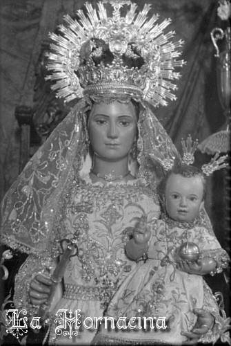 La patrona de la localidad onubense es obra del escultor Agustín Sánchez-Cid Agüero, fechada en el año 1937. Este artista, sintiéndose mas escultor y académico que imaginero, quiso hacer una obra que se alejara de la producción del momento; así, tanto para la imagen de la Virgen como la del Niño, utilizó modelos del natural, método que le posibilitó la representación de unos iconos lejos de arquetipos repetitivos. Consecuentemente, para la policromía utilizó una técnica mucho más parecida a los tratamientos pictóricos de la pintura de caballete que a los tradicionales y habituales procesos de la imaginería; de este modo, los tonos de las diferentes partes de los rostros y de las cabezas en general se aplicaron con pinceladas fundidas y esfumatos, sin aparecer en la representación del cabello, cejas o pestañas ningún tipo de "pelilleao".