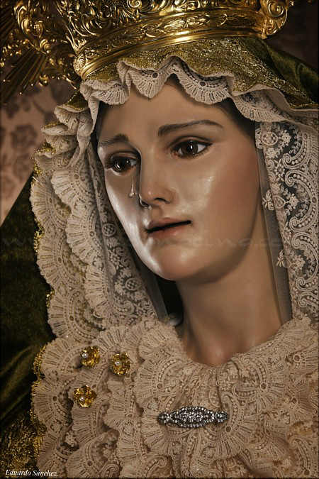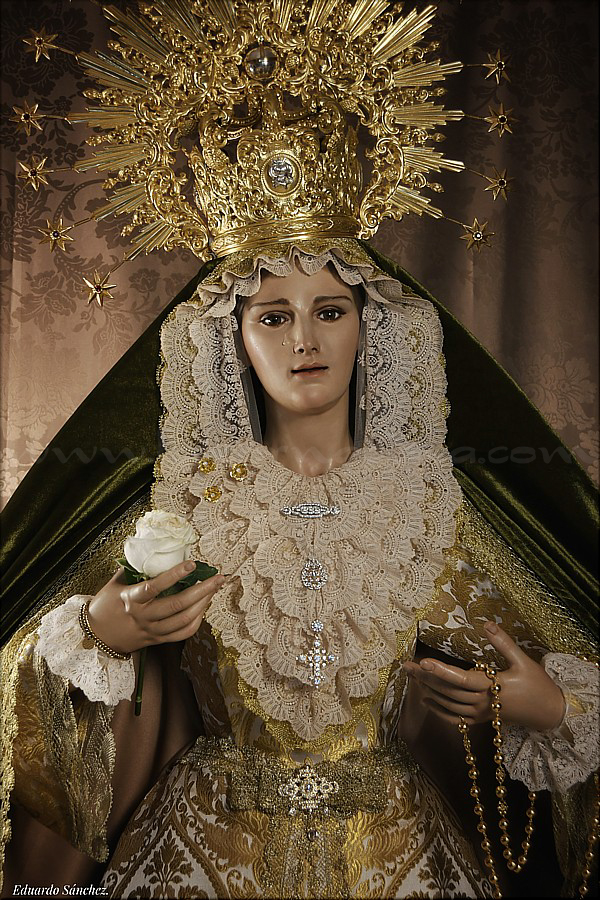 Eduardo Sánchez Aranda María Santísima de la Aurora. Imagen de candelero presentada y bendecida el pasado 23 de noviembre en la Prioral de San Sebastián de Puerto Real (Cádiz) para la Hermandad de la Resurrección de dicha ciudad. La talla está realizada en madera de cedro real, midiendo 170 cm, con brazos articulados, policromía al óleo y postizos de ojos de cristal, pestañas de pelo natural en los párpados superiores, dientes de protésico dental y una lágrima de cristal, con la que el artista ha querido transmitir el momento en que contempla a su Hijo con vida tras haber atravesado el desgarrador martirio en la cruz, junto con la serenidad y dulzura que emana de su rostro. El titular cristífero de la referida Hermandad, el Santísimo Cristo de la Victoria en su Sagrada Resurrección, es obra también de Sánchez Aranda, y fue presentado en La Hornacina el 2 de diciembre de 2021. |