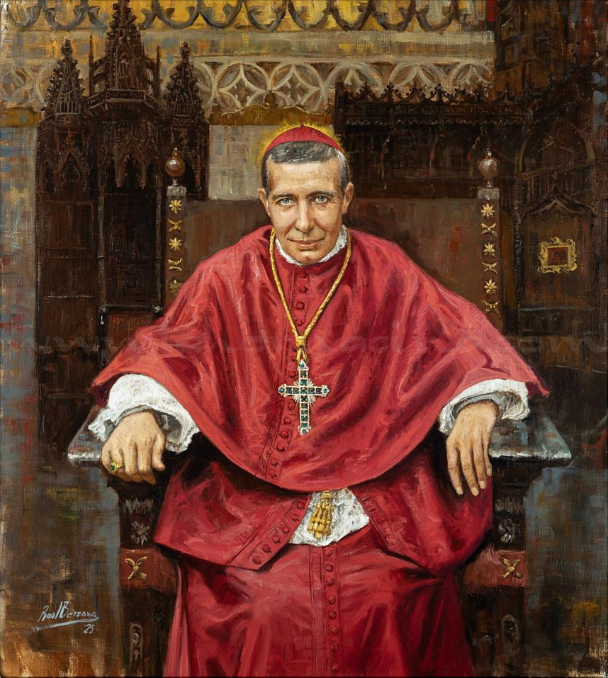Raúl Berzosa La Catedral de Sevilla ha acogido la llegada de una nueva obra pictórica dedicada al beato Marcelo Spínola, cardenal arzobispo de Sevilla y figura clave de la Iglesia hispalense de finales del siglo XIX y comienzos del XX, cuyos restos reposan en el interior del templo. El cuadro, encargado expresamente por el Cabildo Metropolitano al pintor malagueño Raúl Berzosa, pasa a formar parte del patrimonio artístico de la Capilla de Santiago, enriqueciendo así el discurso devocional y cultural de la Seo sevillana. La obra, un óleo sobre lienzo de 89 x 100 cm, presenta a Spínola sentado y de frente al espectador, revestido con el hábito coral cardenalicio. La composición transmite solemnidad y serenidad, cualidades que caracterizaron tanto la personalidad como el magisterio pastoral del prelado. Lejos de un retrato meramente descriptivo, Berzosa ha optado por una interpretación artística construida a partir de la síntesis de varias fotografías de época, reelaboradas con un lenguaje pictórico contemporáneo y respetuoso con la iconografía histórica. Uno de los elementos más significativos del cuadro es el protagonismo de la sede episcopal del coro de la Catedral de Sevilla, que puede verse tras la figura del beato. La arquitectura catedralicia no actúa como simple fondo, sino que establece un diálogo visual y simbólico con el retratado, reforzando su vinculación espiritual y física con el templo. Este recurso compositivo subraya la dimensión eclesial de Spínola y su profunda relación con la sede hispalense, que marcó de forma decisiva su legado. Desde el punto de vista cromático, la obra se articula en torno a una gama de tonos tierras -siena tostada, ocre amarillo y rojo cadmio- que aportan calidez, equilibrio y unidad al conjunto. Esta paleta, sobria y armónica, contribuye a realzar la figura sin estridencias, favoreciendo una lectura pausada y contemplativa acorde con el espacio sacro en el que se integra. Con esta incorporación, el Cabildo de la Catedral de Sevilla reafirma su compromiso con el arte contemporáneo al servicio de la fe y la memoria histórica, apostando por creadores actuales capaces de dialogar con siglos de tradición. La pintura de Berzosa no solo rinde homenaje a Marcelo Spínola, sino que se suma al rico patrimonio artístico de la Catedral como testimonio de la continuidad viva entre pasado y presente. |