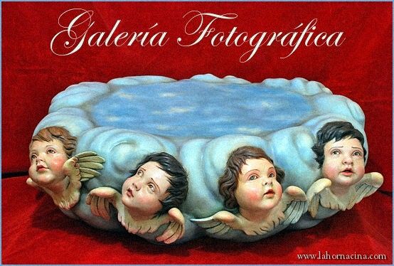 Nueva obra realizada en madera de cedro, tallada y policromada, por el escultor e imaginero de El Puerto de Santa María (Cádiz) para servir de peana de nubes a la imagen de candelero de Nuestra Señora de la Salud, patrona de la pedanía de Jédula (Arcos de la Frontera-Cádiz), labrada también por Ángel Pantoja (2005). La pieza, que estará al uso tanto en el culto interno de la imagen, venerada en la parroquia jedulense de San Isidro Labrador, como en la salida procesional anual de la misma a principios de septiembre, mide 28 x 85 cm. En las labores de policromía ha colaborado la escultora e imaginera gaditana Ana Rey. Pulsando en la imagen, podrán ver más fotografías de un escabel circundado por compactos bloques de nubes, en cuya parte frontal vemos cuatro cabezas de angelitos, de rostros mofletudos y cabellos movidos por el viento, que emergen de un par de alas policromadas y dirigen sus extasiadas miradas hacia la majestad de la Señora. |