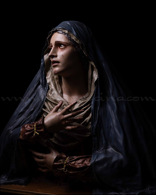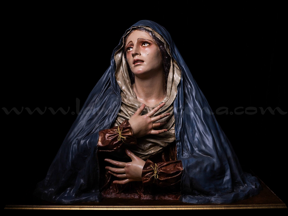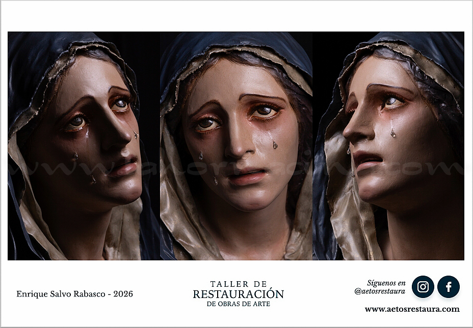 La reciente intervención llevada a cabo por Enrique Salvo Rabasco sobre el busto de la Dolorosa (1949), obra del escultor e imaginero malagueño Pedro Pérez Hidalgo, perteneciente a la Hermandad de las Penas de Málaga, ha permitido devolver la dignidad formal y devocional a una imagen que durante años permaneció en un estado de abandono material y funcional incompatible con su correcta conservación y con su creciente consideración patrimonial. Concebida originalmente como figura integrada en el antiguo trono del Santísimo Cristo de la Agonía, esta Dolorosa nació subordinada a un conjunto procesional mayor, lo que condicionó su resolución técnica, su tratamiento volumétrico y la elección de materiales. El progresivo cambio de uso y la decisión de dotarla de entidad propia como imagen devocional independiente no fue acompañado, durante décadas, de las necesarias actuaciones de mantenimiento y conservación preventiva. El prolongado abandono en condiciones inadecuadas, unido a la ausencia de criterios de conservación sistemáticos, derivó en una acusada degradación general del conjunto, con alteraciones materiales, pérdidas de estabilidad y un acusado empobrecimiento de la lectura estética. Este deterioro acumulado impidió durante años acometer una restauración integral orientada a la preservación a largo plazo de la imagen. Este contexto condicionó decisivamente el enfoque de la intervención. Más allá de una restauración integral en sentido riguroso -imposible de abordar con garantías debido al estado extremo de deterioro-, los trabajos se centraron en estabilizar estructuralmente la imagen, dignificar su lectura formal y garantizar su viabilidad devocional a medio y largo plazo. Aquellos elementos y materiales originales que presentaban condiciones aceptables de conservación fueron objeto de tratamientos específicos de carácter conservativo, priorizando su preservación y correcta integración. Mediante la configuración de los paños se dotó al conjunto de una coherencia volumétrica, un ritmo compositivo y una lectura formal acordes con la tradición de la imaginería barroca. A ello se sumó la sustitución de las manos preexistentes por otras nuevas talladas en madera de cedro, material seleccionado por su estabilidad y durabilidad. La policromía, ejecutada con técnicas tradicionales y criterios plenamente integrados en la estética barroca andaluza, fue la única respuesta técnica viable ante un estado de conservación límite. El tratamiento cromático se orientó a recuperar una expresividad contenida y sobria, acorde con la tradición de la escuela malagueña, garantizando al mismo tiempo la estabilidad material del conjunto. El resultado final permite hoy contemplar una Dolorosa plenamente integrada en el ámbito devocional, con unas condiciones materiales que aseguran su correcta conservación y su perdurabilidad a medio y largo plazo, marcando un punto de inflexión en la consideración patrimonial de la obra. |