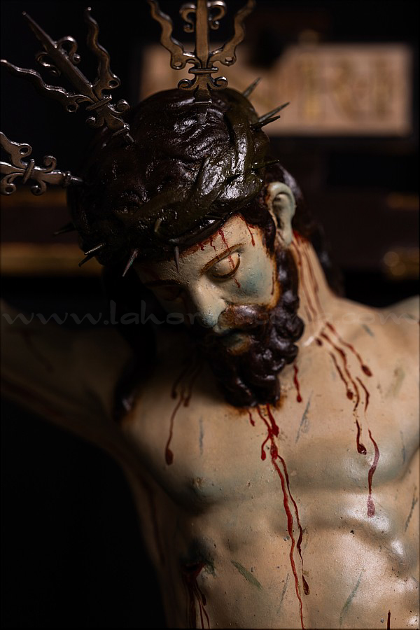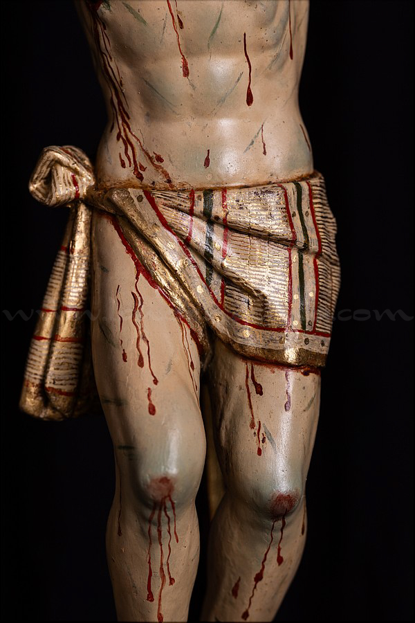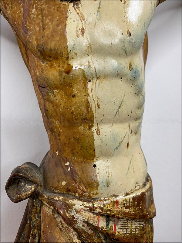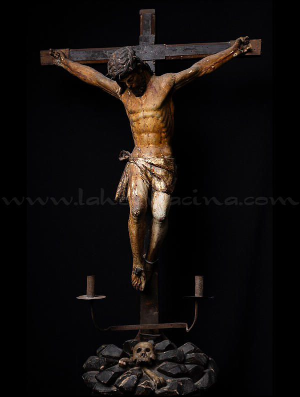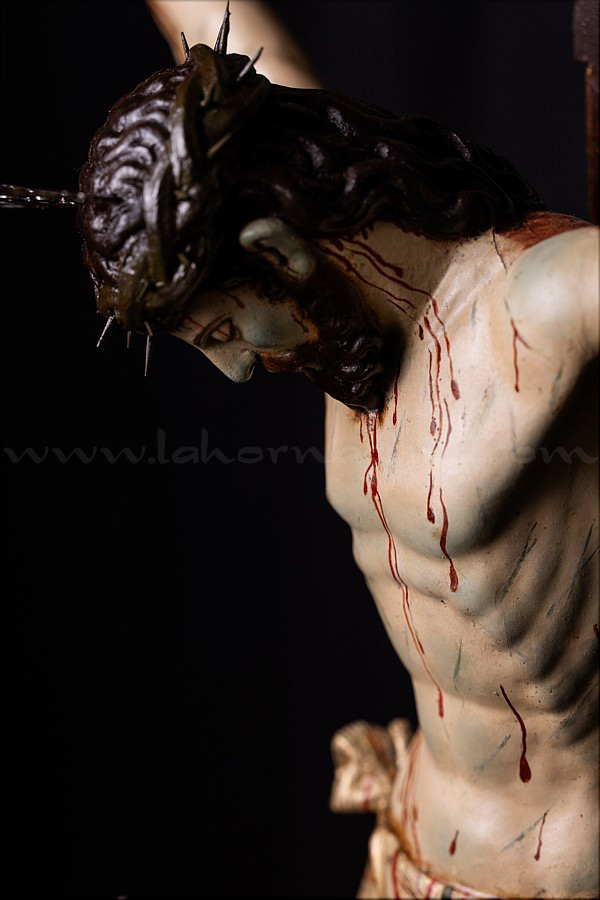 La imagen restaurada es un Cristo Crucificado en madera tallada y policromada de 50 cm de altura, propiedad de Francisco Jesús Flores Matute, Doctor en Historia del Arte. Atribuible a la escuela sevillana del último tercio del siglo XVI, tanto por sus características formales como por su concepción técnica y estética, la reciente intervención de conservación-restauración realizada por Enrique Salvo Rabasco ha permitido recuperar la lectura original de la obra, además de aportar datos relevantes para su correcta contextualización histórico-artística. La escultura presenta anatomía precisa pero contenida, marcada verticalidad y suave contraposto. El modelado del torso, de planos blandos y transición armónica, evidencia un lenguaje manierista avanzado, mientras que la serenidad del rostro y la ausencia de patetismo extremo remiten al clima espiritual contrarreformista. El perizoma, de pliegues amplios y nudo lateral, aporta dinamismo sin romper el equilibrio compositivo, siguiendo modelos ampliamente difundidos en la escultura sevillana de finales del Quinientos. Como hemos apuntado, la obra está ejecutada en madera policromada. La preparación a base de sulfato cálcico y cola orgánica, junto con la policromía al temple graso y los estofados originales del perizoma, realizados mediante oro fino sobre bol rojizo y posteriores incisiones decorativas, responden a los procedimientos característicos de los talleres sevillanos del referido periodo. El conjunto presentaba un acusado oscurecimiento general, provocado por depósitos superficiales, barnices oxidados y repintes, además de fisuras, lagunas y pérdidas de cohesión del soporte. |