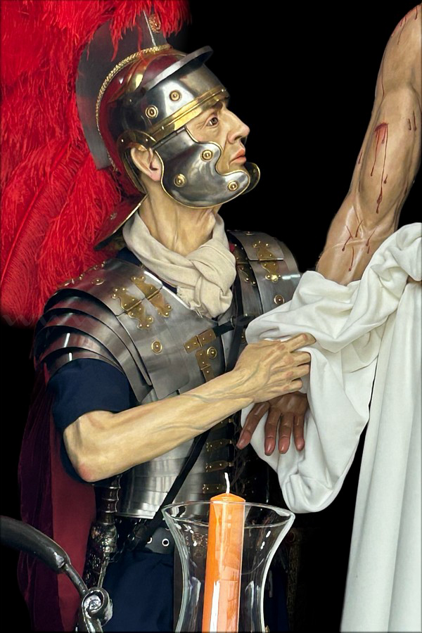 Centurión romano Nueva figura para el misterio procesional del Grupo de Fieles de Nuestro Padre Jesús de la Luz Despojado de sus Vestiduras y María Santísima de la Resignación, cuya salida tendrá lugar hoy, Domingo de Pasión, por las calles del barrio sevillano de Campos de Soria. Esta obra acerca el proyecto a su culminación, aunque aún quedan por ejecutar figuras como Simón de Cirene y un sayón, fundamentales para completar la escena. Se enmarca dentro de una etapa de gran proyección para el escultor e imaginero ciudadrealeño, con presencia en circuitos internacionales de pintura y escultura. El nuevo centurión ha sido concebida para dotar de movimiento y tensión narrativa al conjunto, integrándose en una escena de creciente complejidad compositiva. No solo cumple una función estética, sino que refuerza el discurso visual del Despojo, guiando la mirada del espectador y acentuando el dramatismo del momento. |