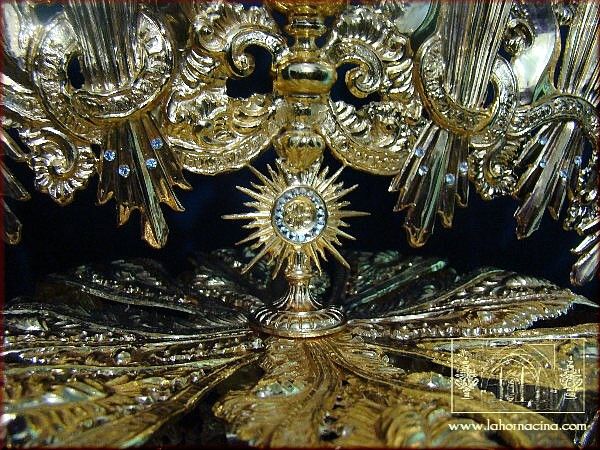 La corona, donada por un grupo de hermanos, devotos de la imagen, y por el empeño de la Familia Viejo, se encuentra realizada en plata de ley sobredorada, con pedrerías basadas en brillantes, esmeraldas y rubíes. En la pieza aparecen grabadas la Salve y las Letanías dedicadas a la Santísima Virgen.